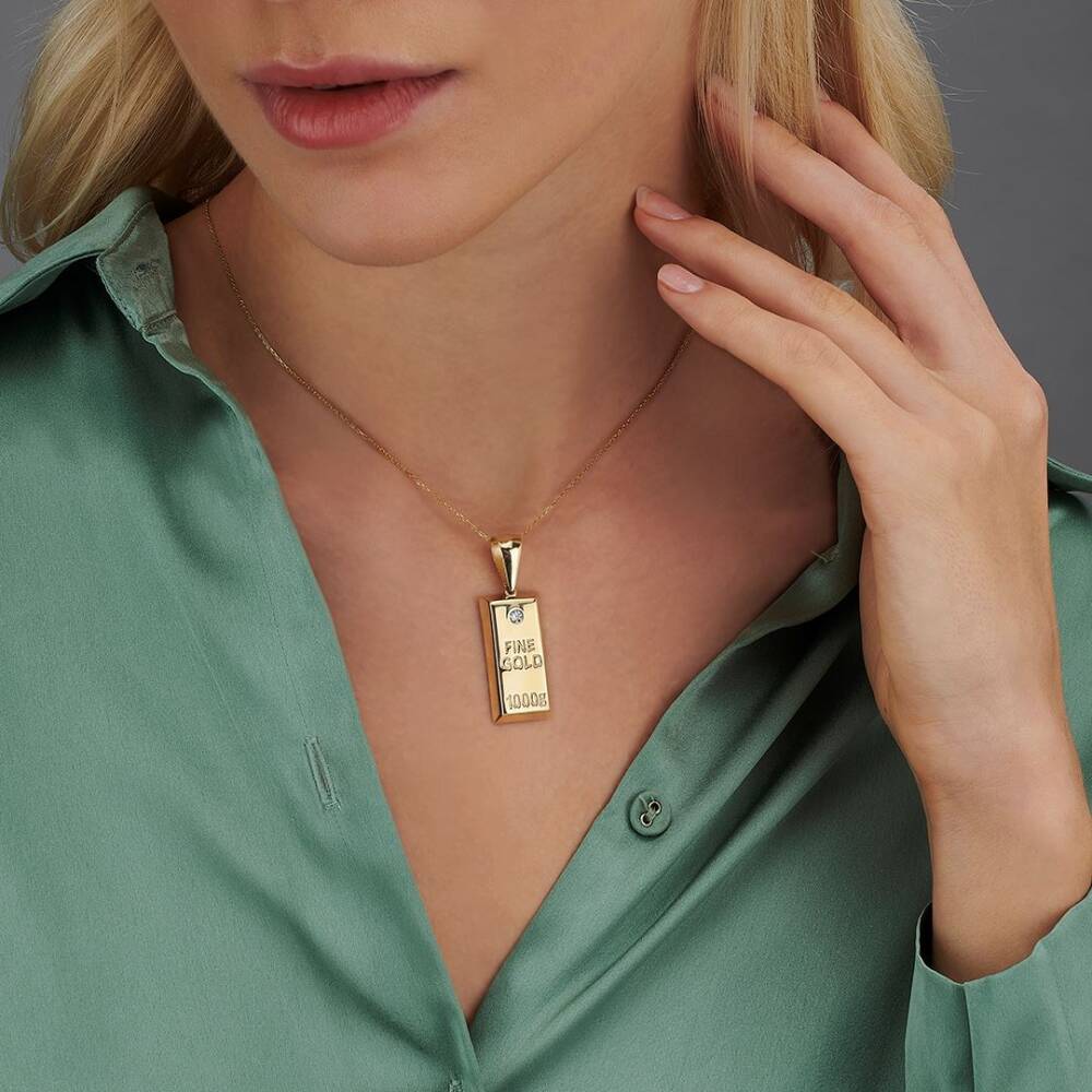 1000 Gram Büyük Boy Külçe Altın Görünümlü Kolye Ucu