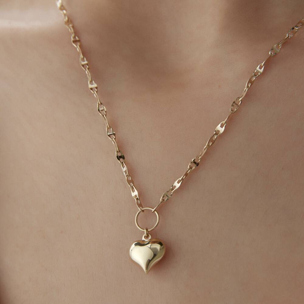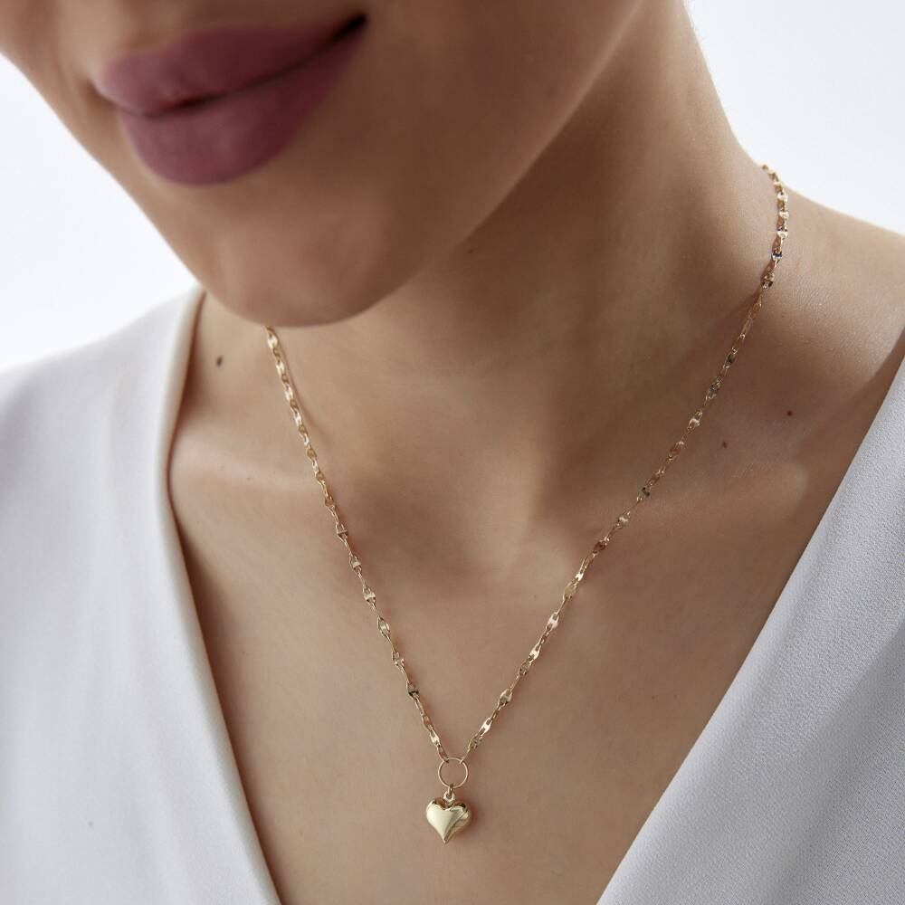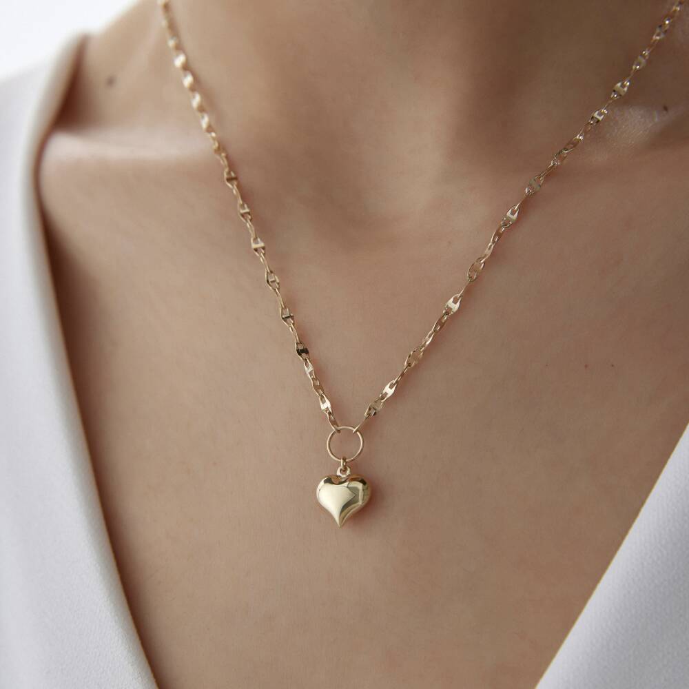 Altın Aynalı Zincirli Bombeli Kalp Kolye