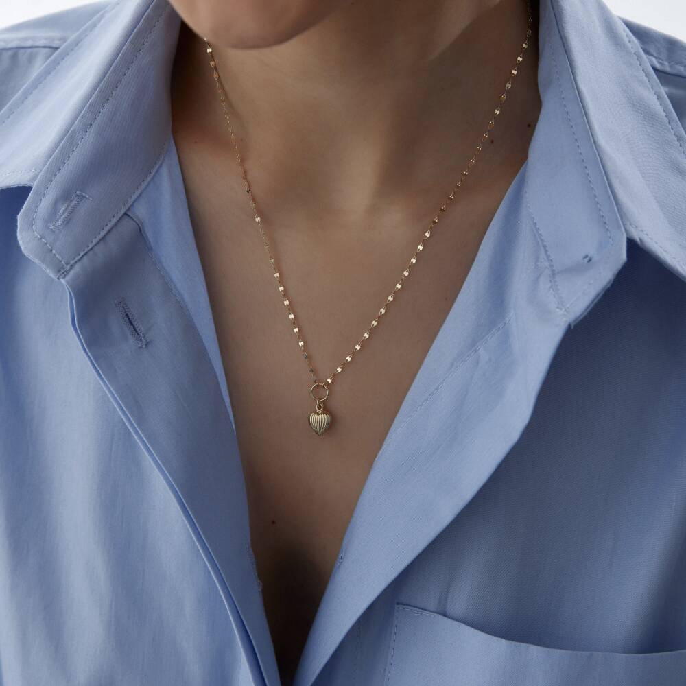 Altın Aynalı Zincirli Desenli Kalp Kolye