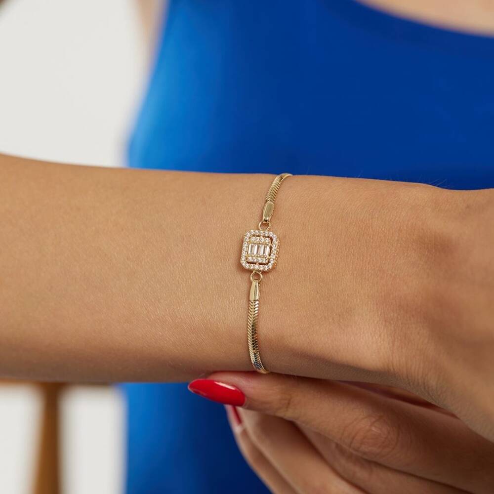 Altın Baget Taşlı Balıksırtı Bileklik - 1