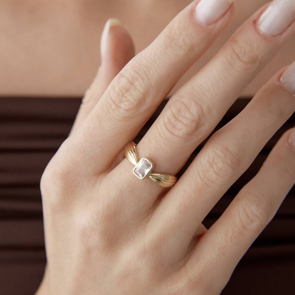 Altın Baget Taşlı Fiyonk Yüzük - 1