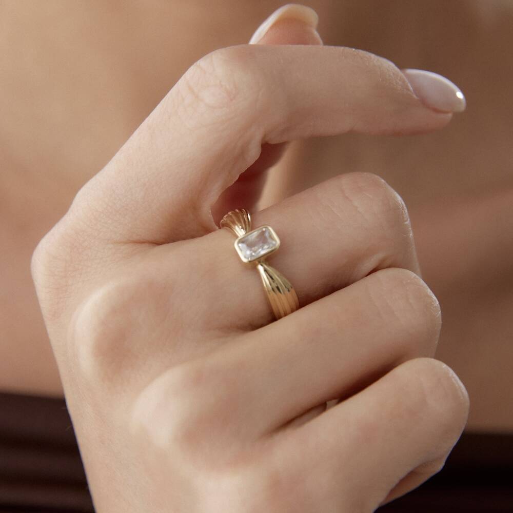 Altın Baget Taşlı Fiyonk Yüzük - 2