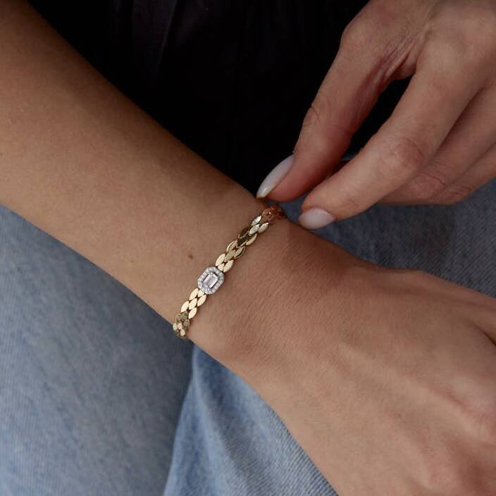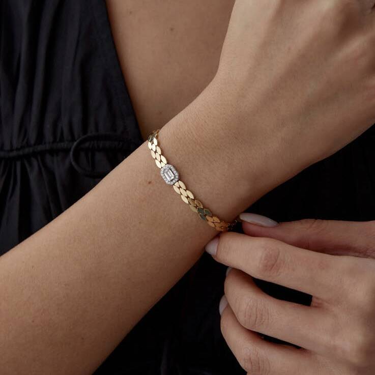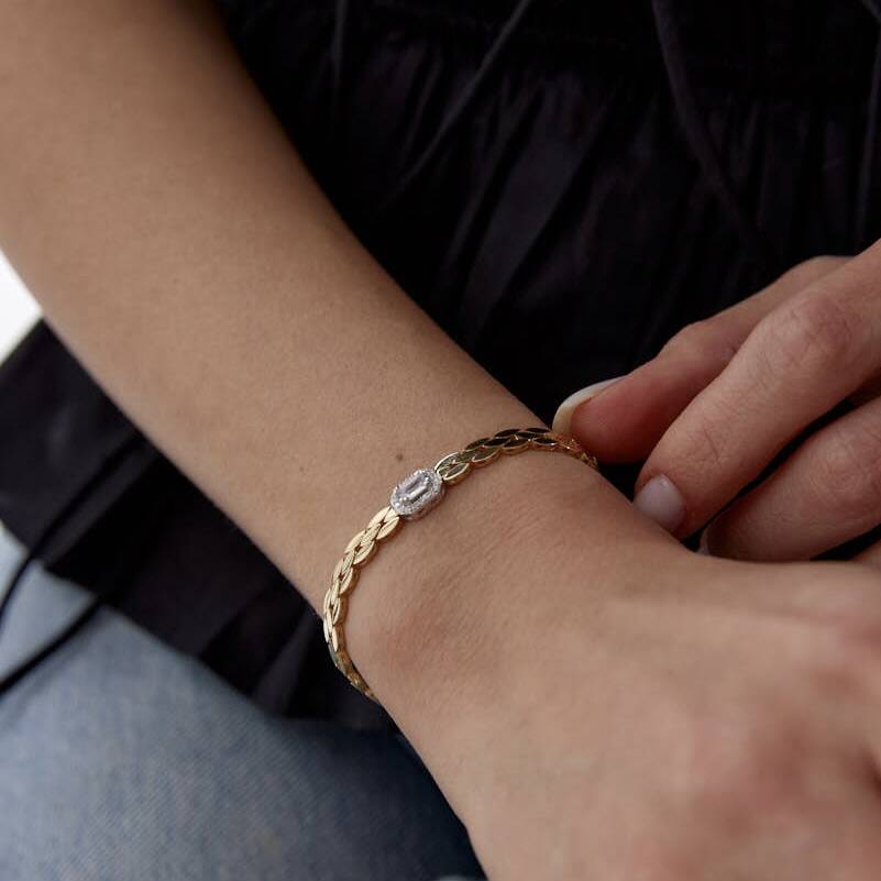 Altın Baget Taşlı Yılan Derisi Bileklik