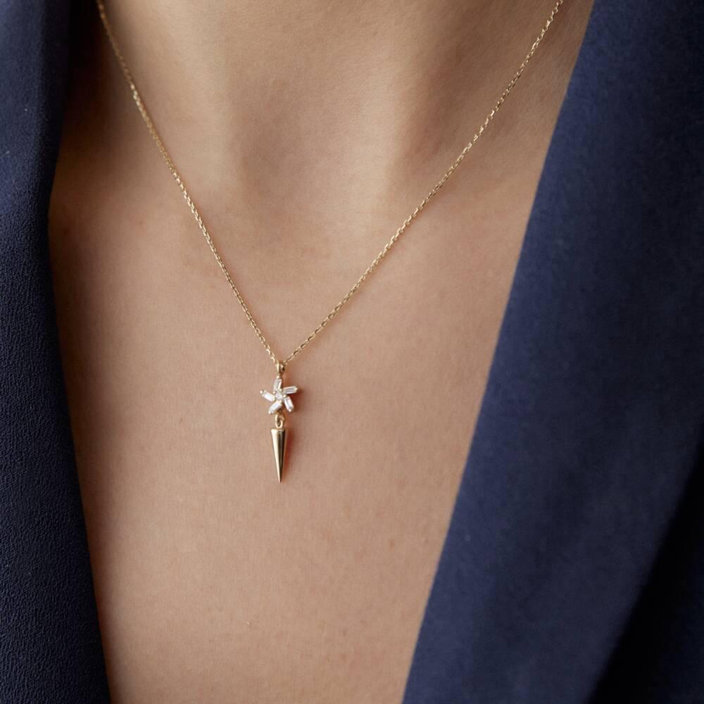 Altın Baget Taşlı Sallantılı Yıldız Kolye - 1