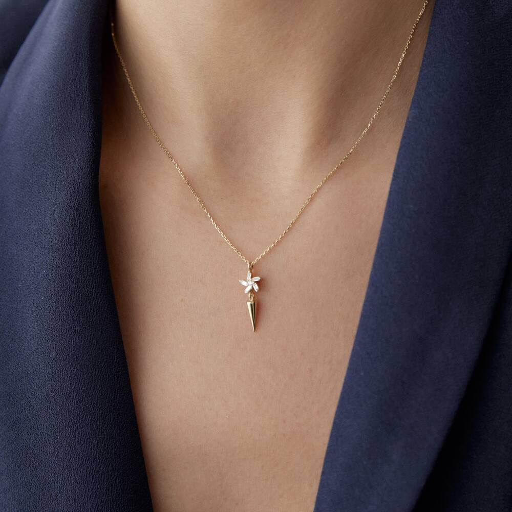 Altın Baget Taşlı Sallantılı Yıldız Kolye - 2