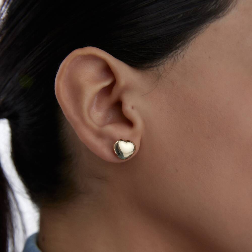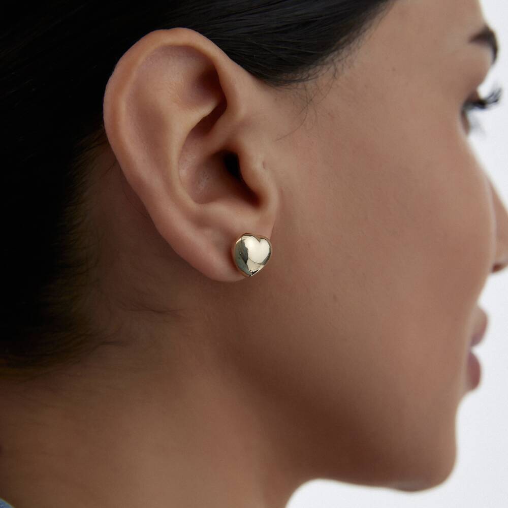 Altın Bombeli Kalp Küpe - 1