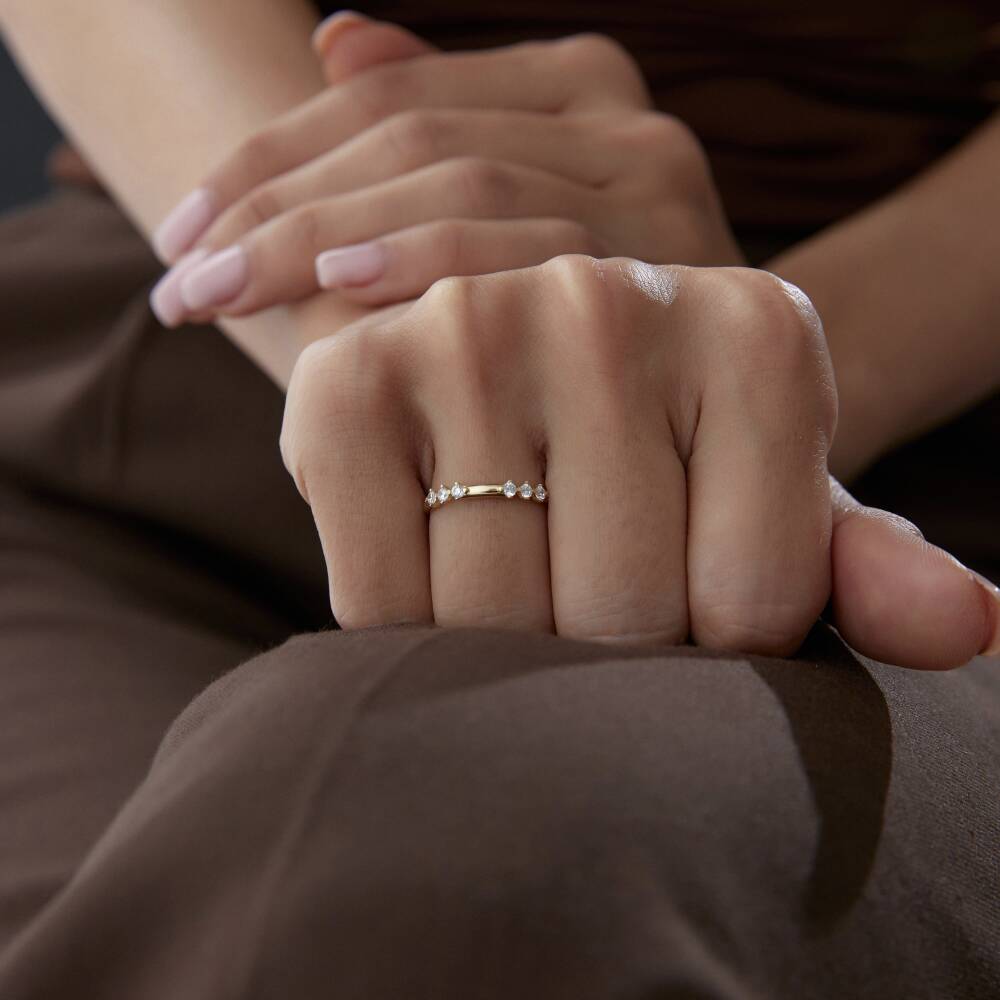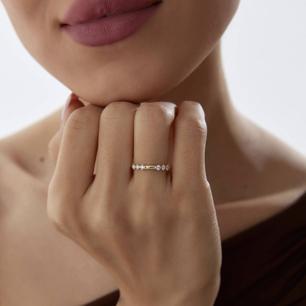 Altın Çok Taşlı Sıralı Minimal Yüzük
