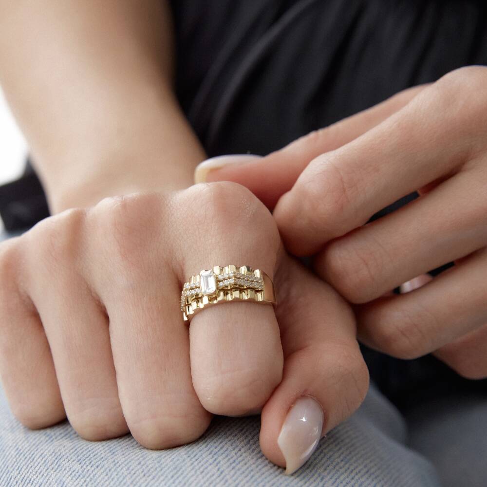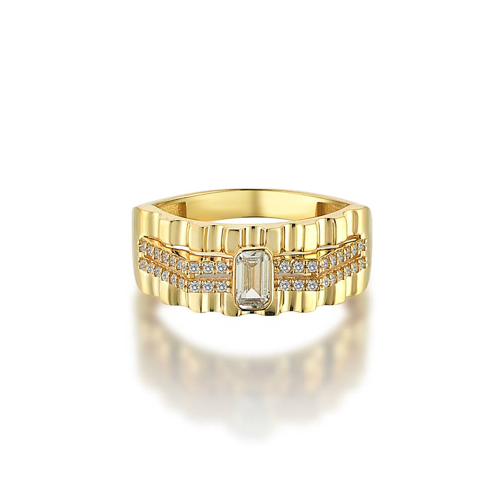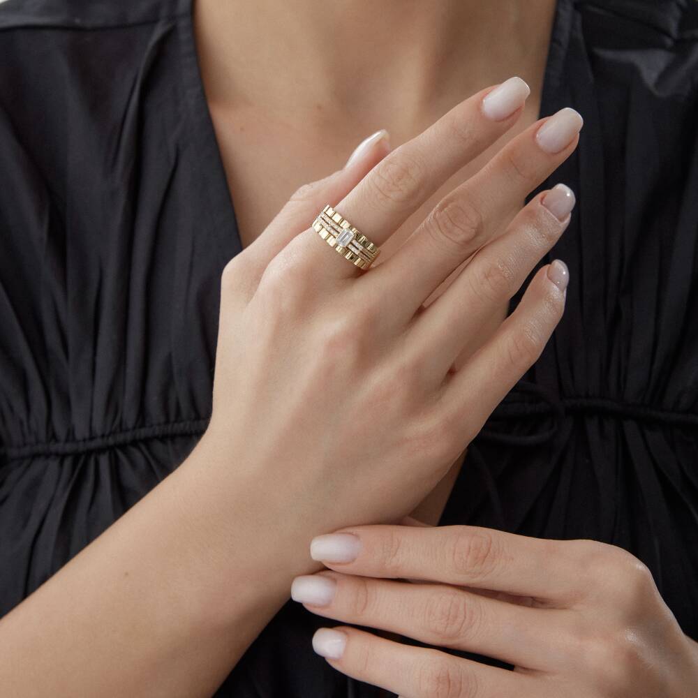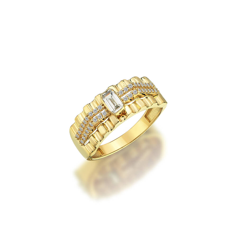 Altın İtalyan Baget Taşlı Vintage Yüzük