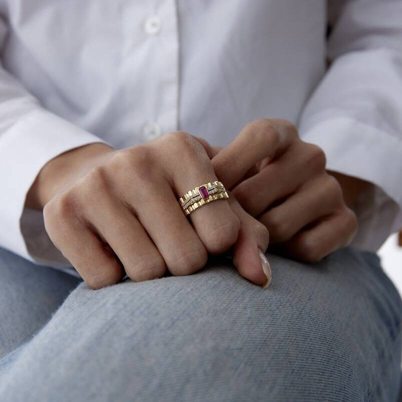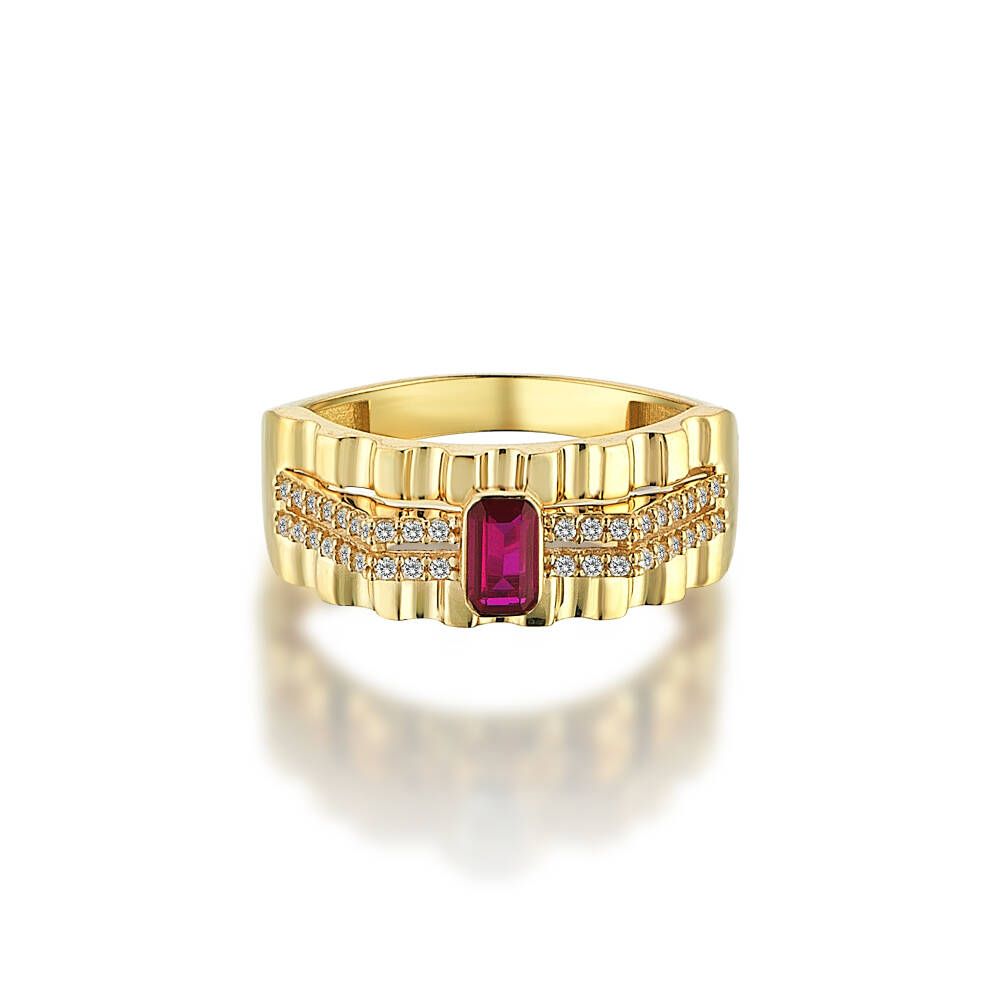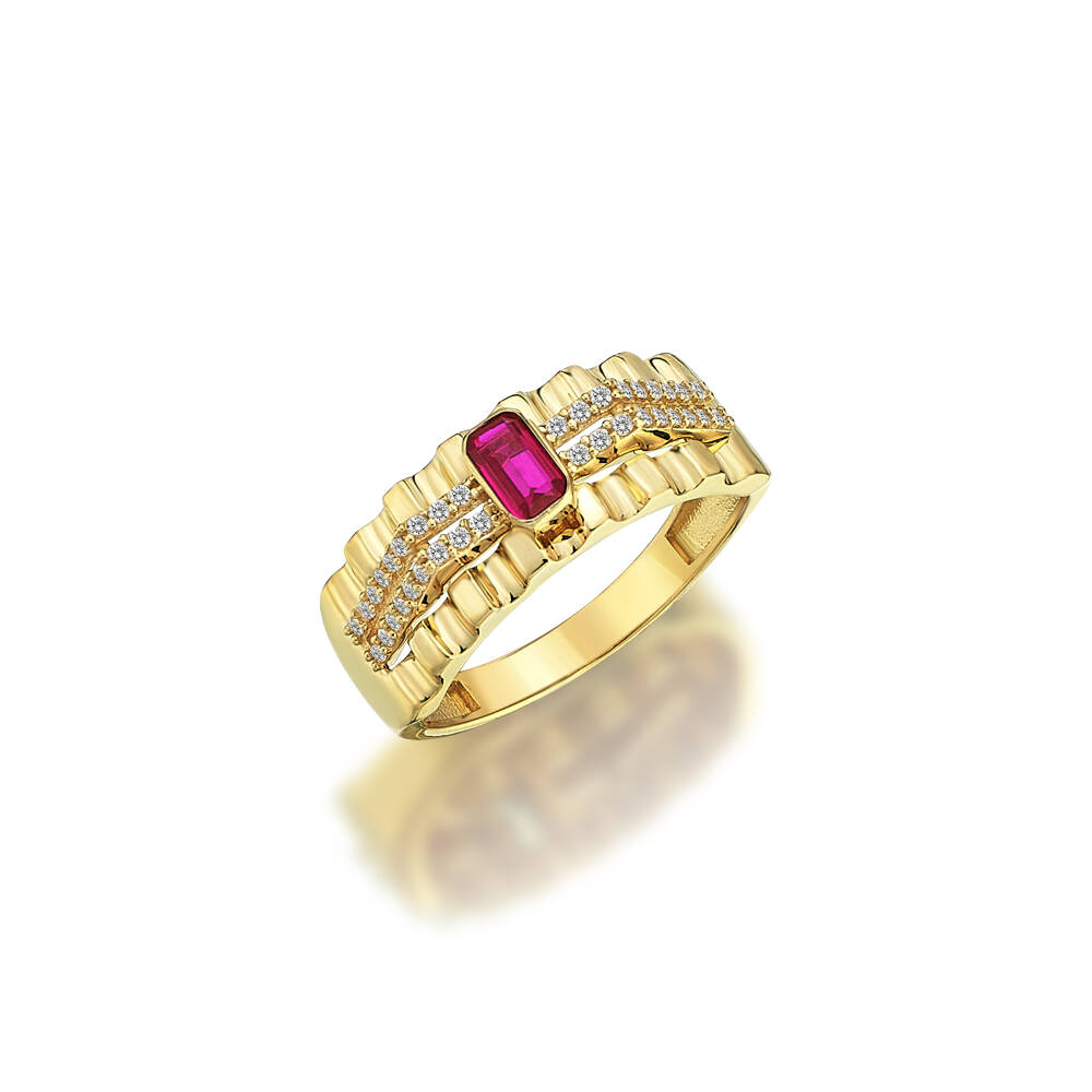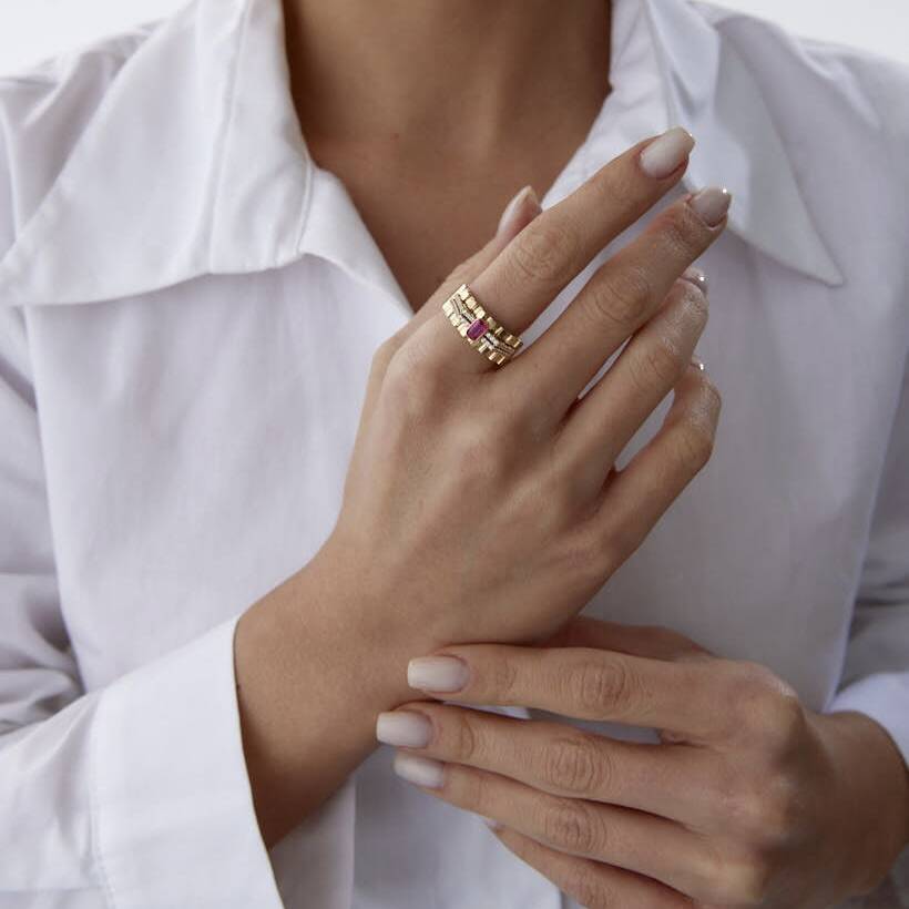 Altın İtalyan Pembe Baget Taşlı Vintage Yüzük