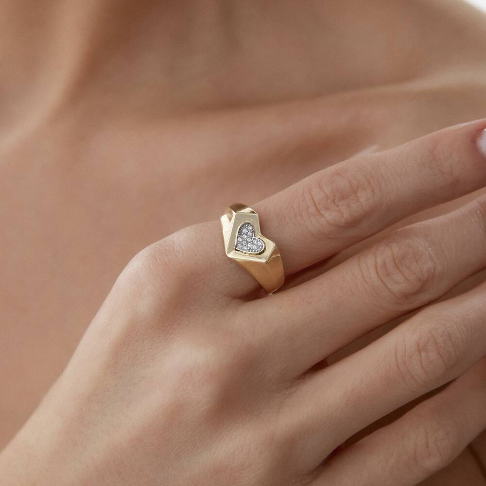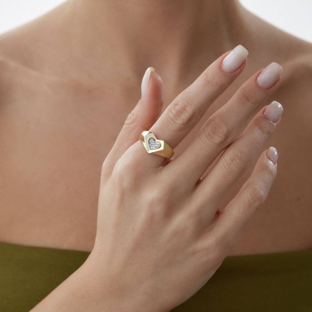 Altın Kalp Kesim Taşlı Yüzük