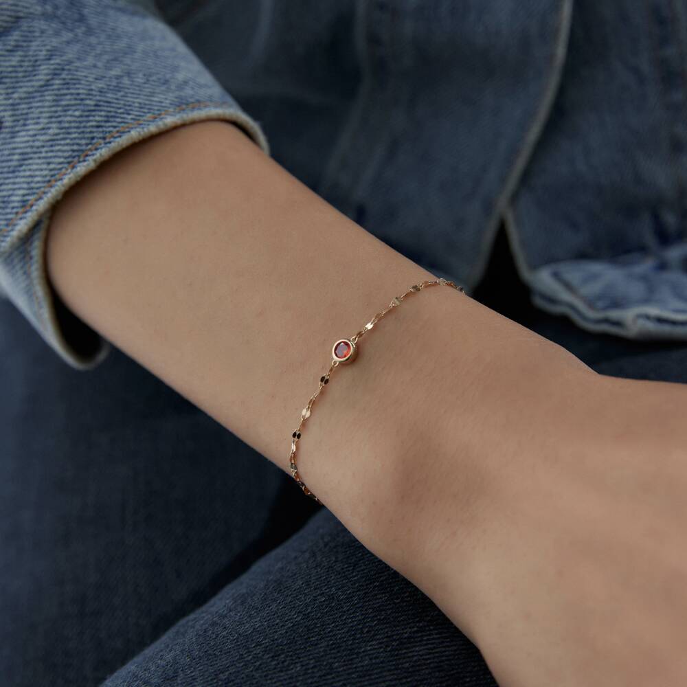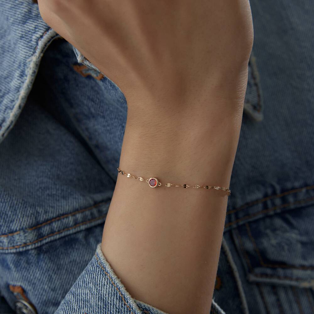 Altın Kırmızı Taşlı Yuvarlak Minimal Bileklik - 1