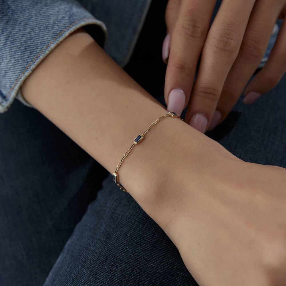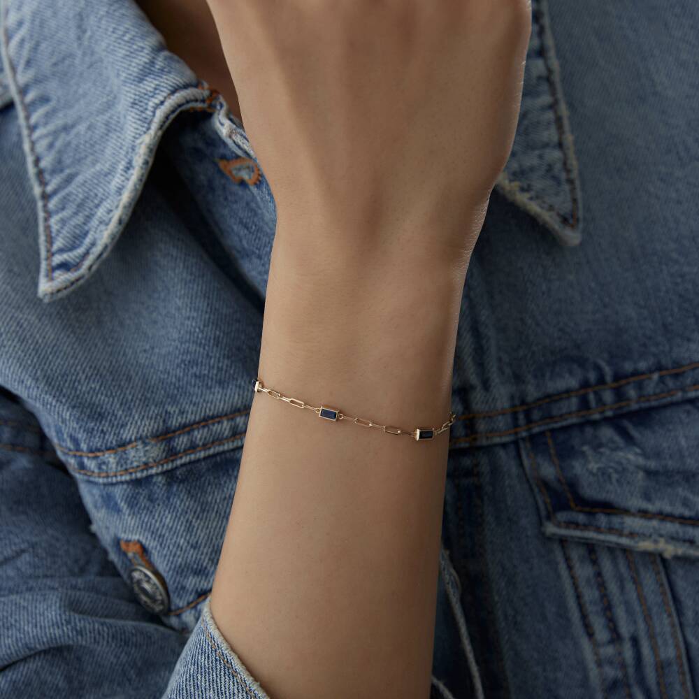 Altın Lacivert Baget Taşlı Ataş Bileklik - 2