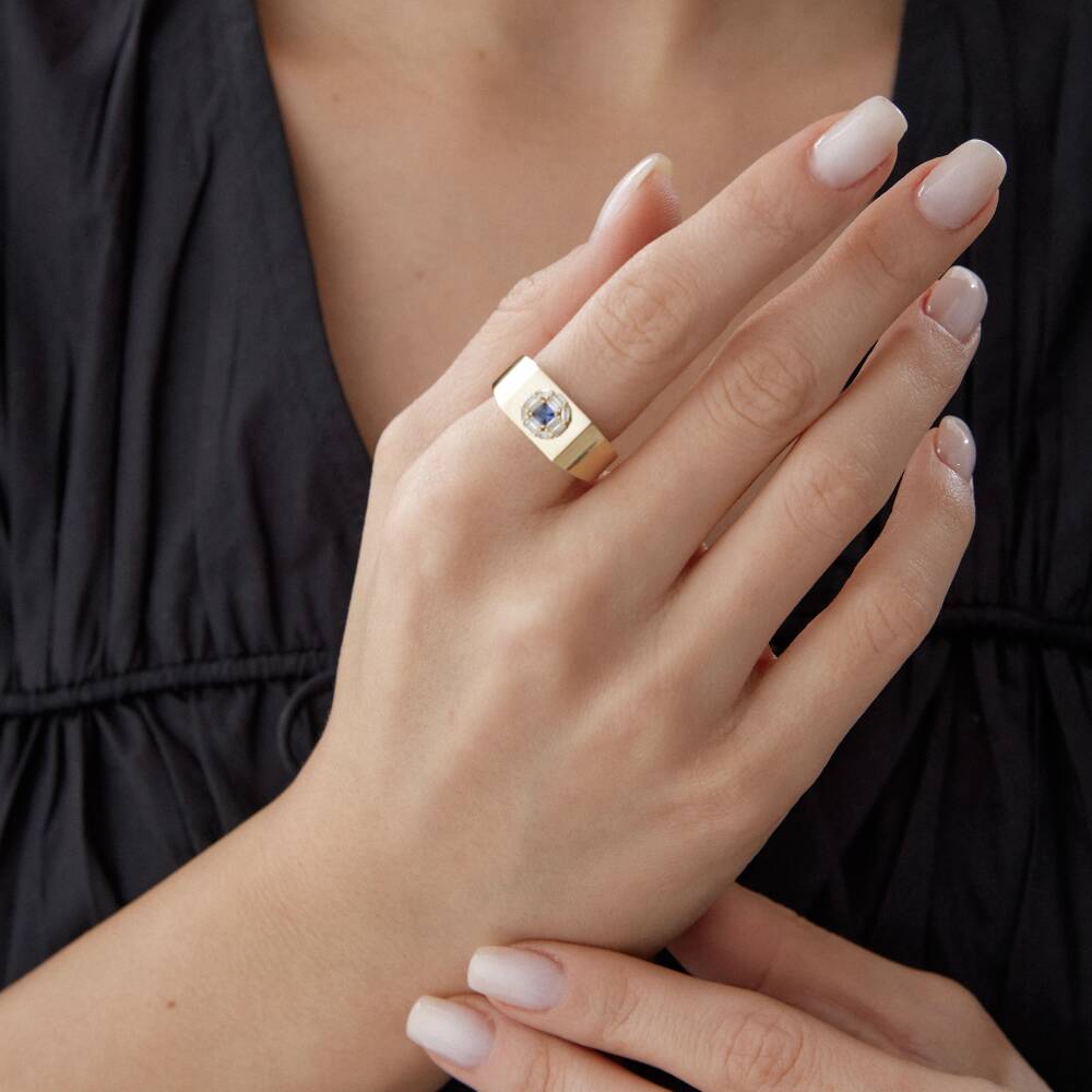 Altın Mavi Baget Taşlı Şövalye Yüzük - 2