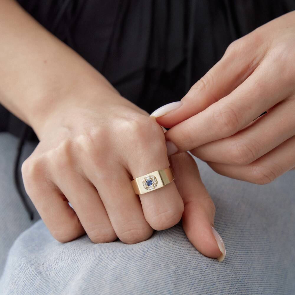 Altın Mavi Baget Taşlı Şövalye Yüzük - 1