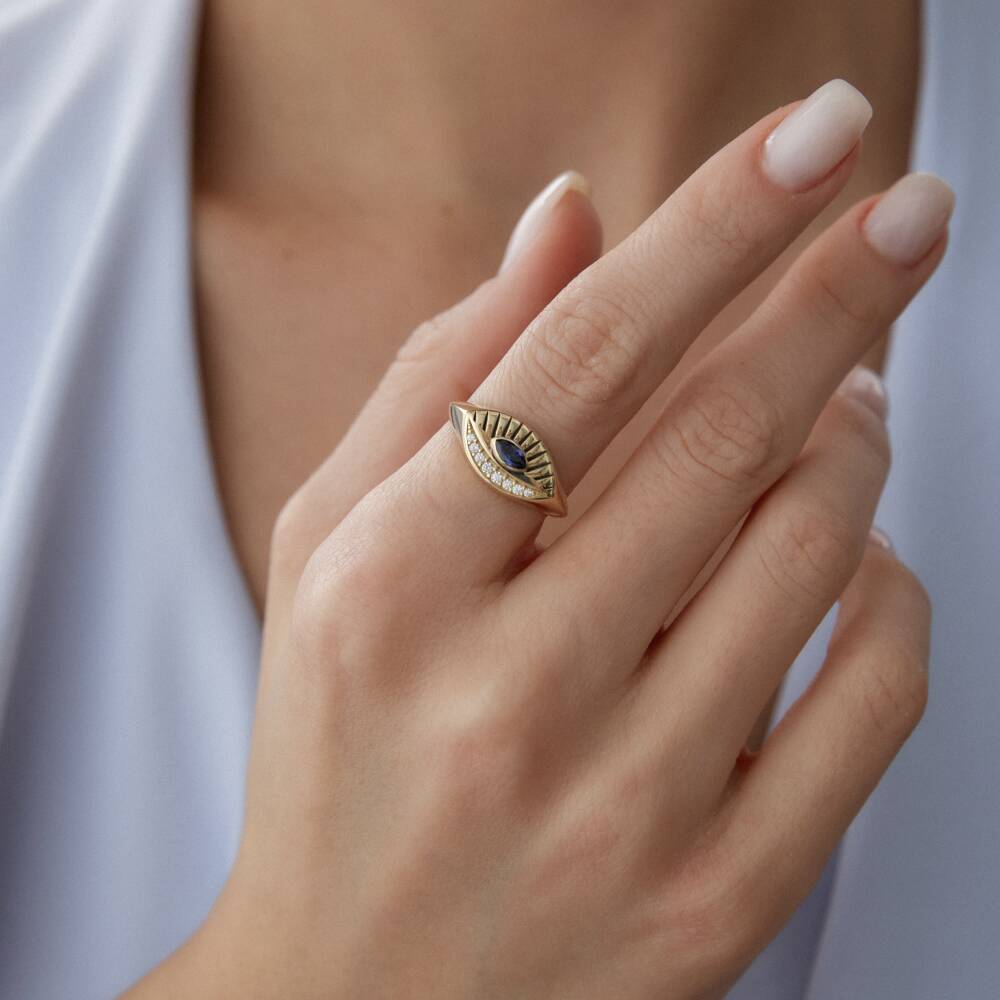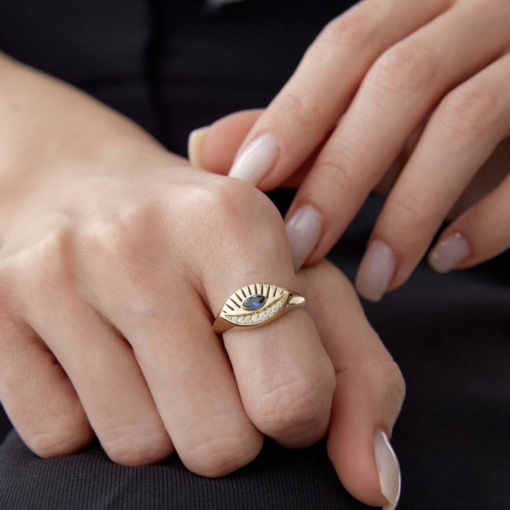 Altın Mavi Taşlı Göz Yüzük - 1