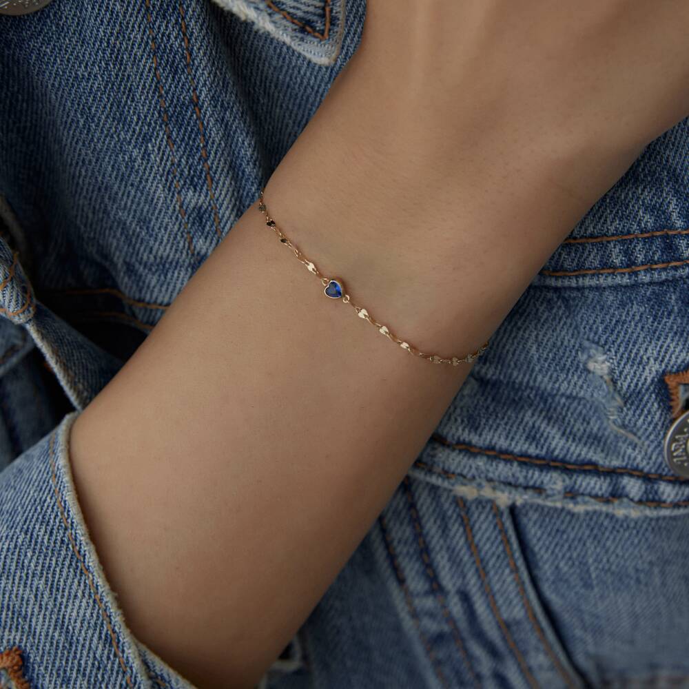 Altın Mavi Taşlı Minimal Kalp Bileklik