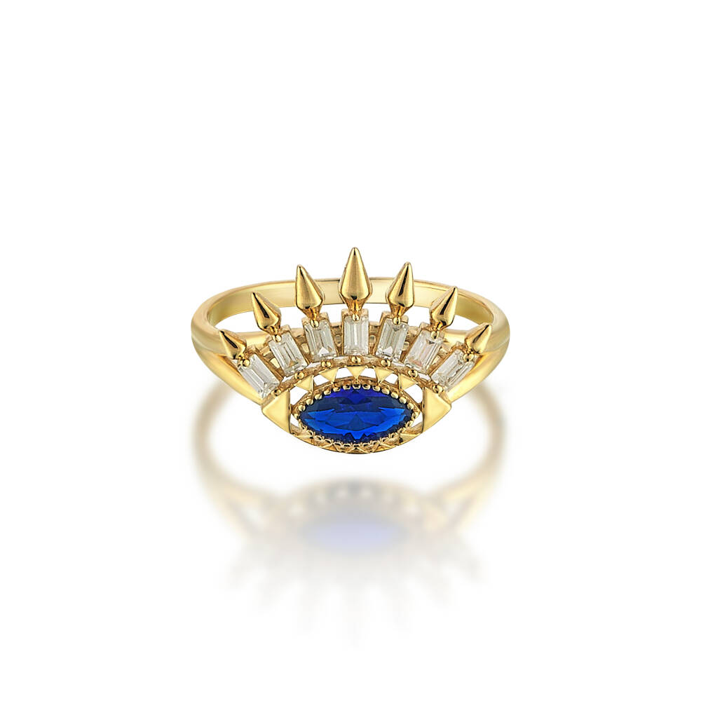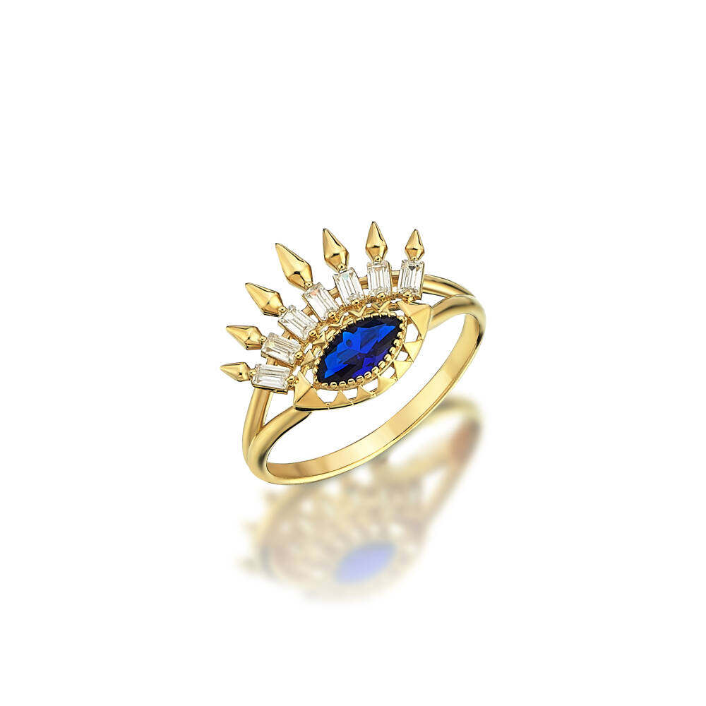 Altın Mavi Taşlı Tasarım Göz Yüzük