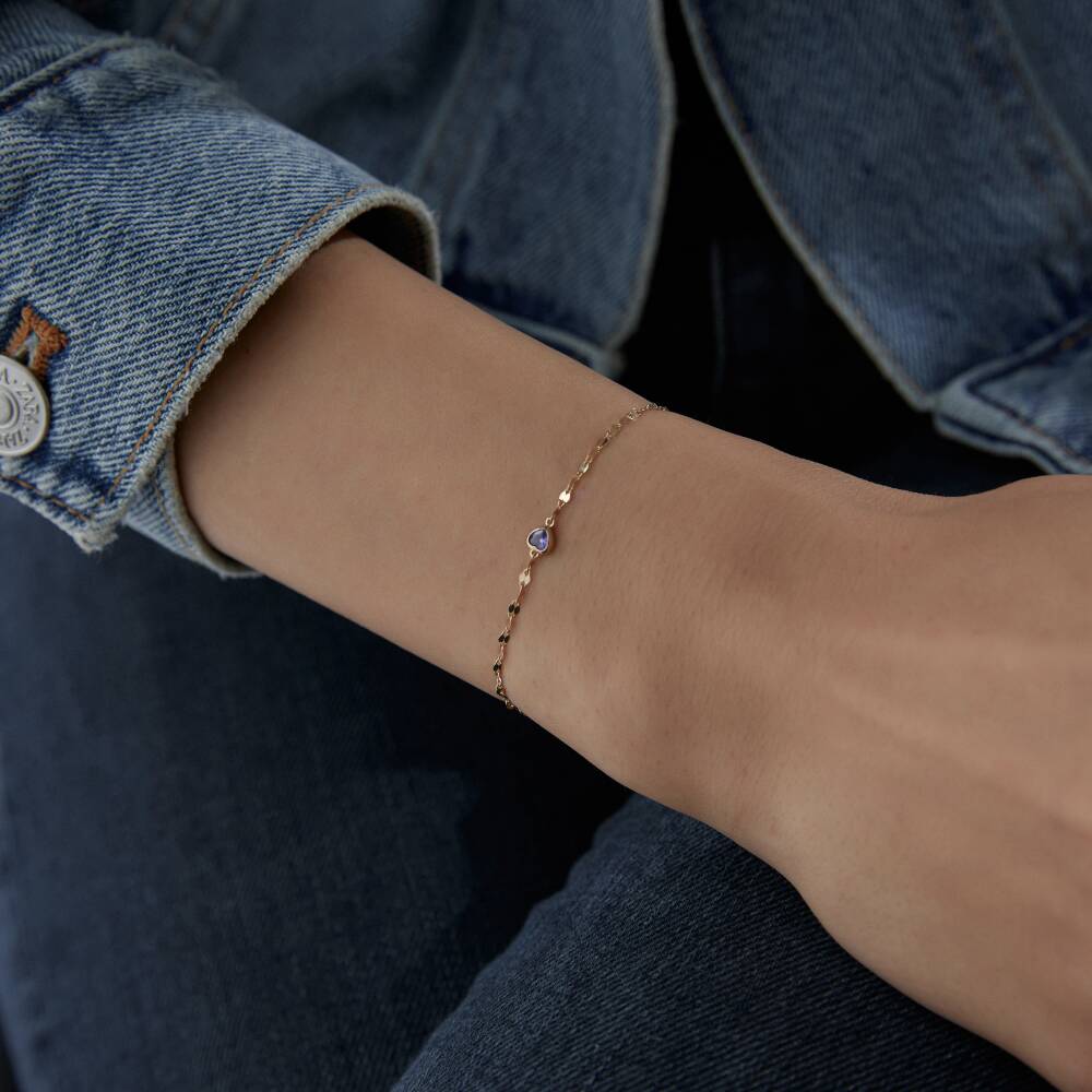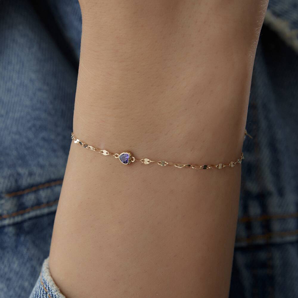 Altın Mor Taşlı Minimal Kalp Bileklik