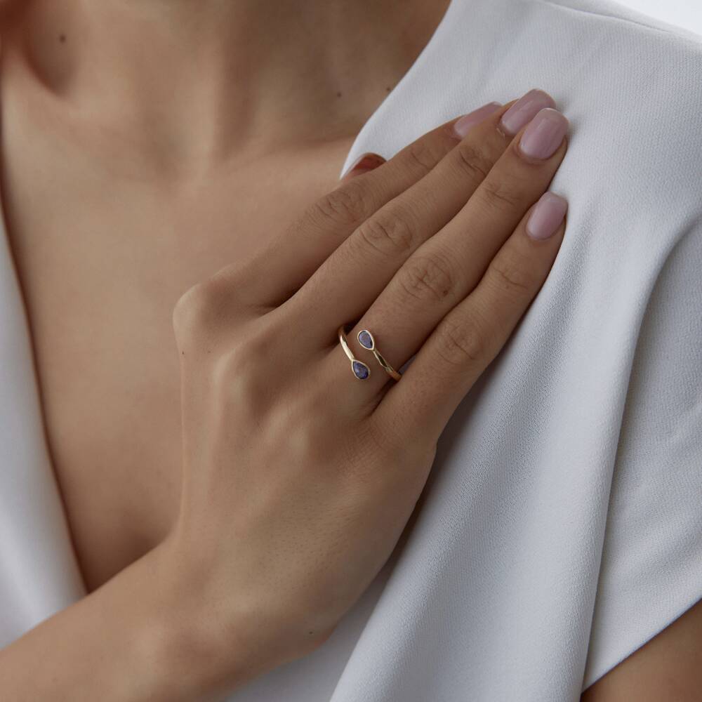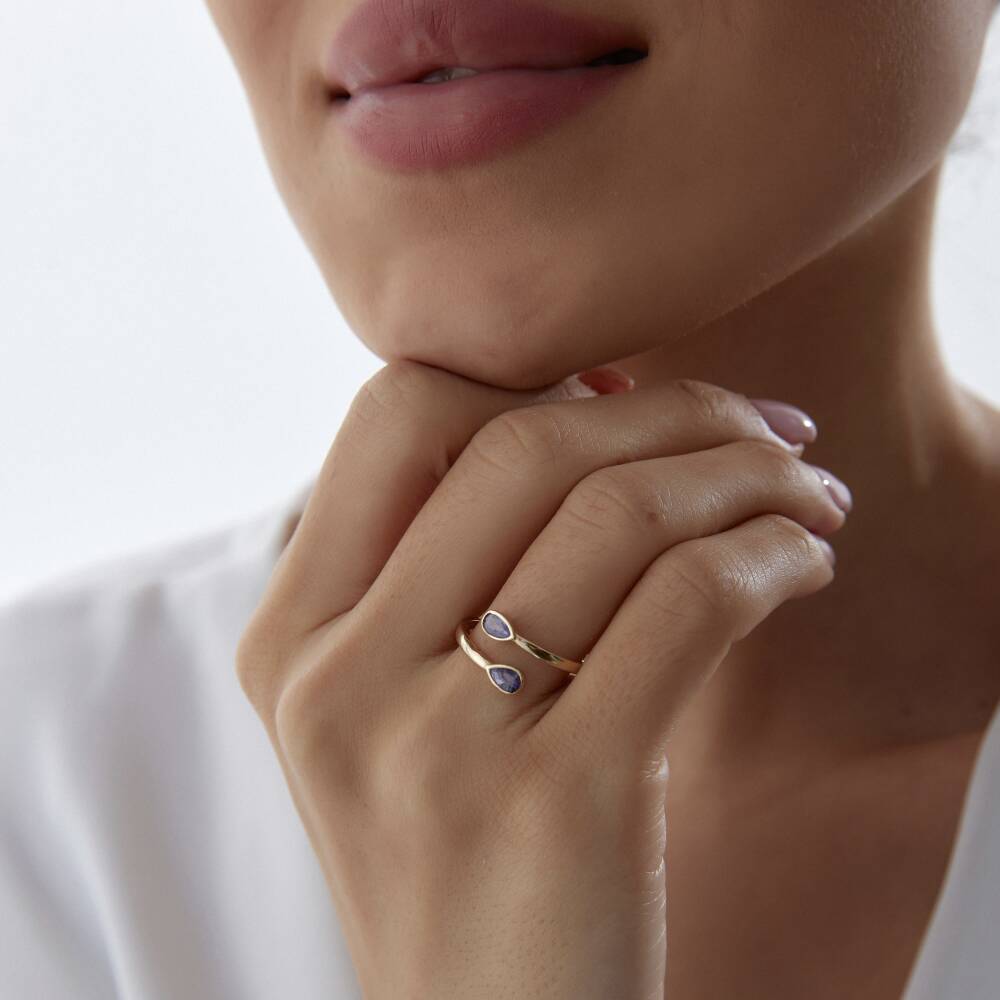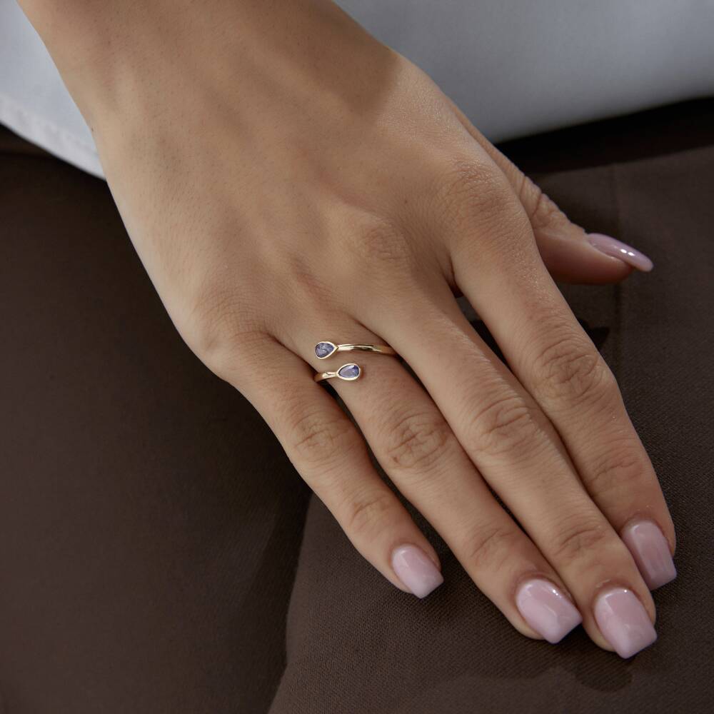 Altın Mor Damla Taşlı Sarmal Yüzük