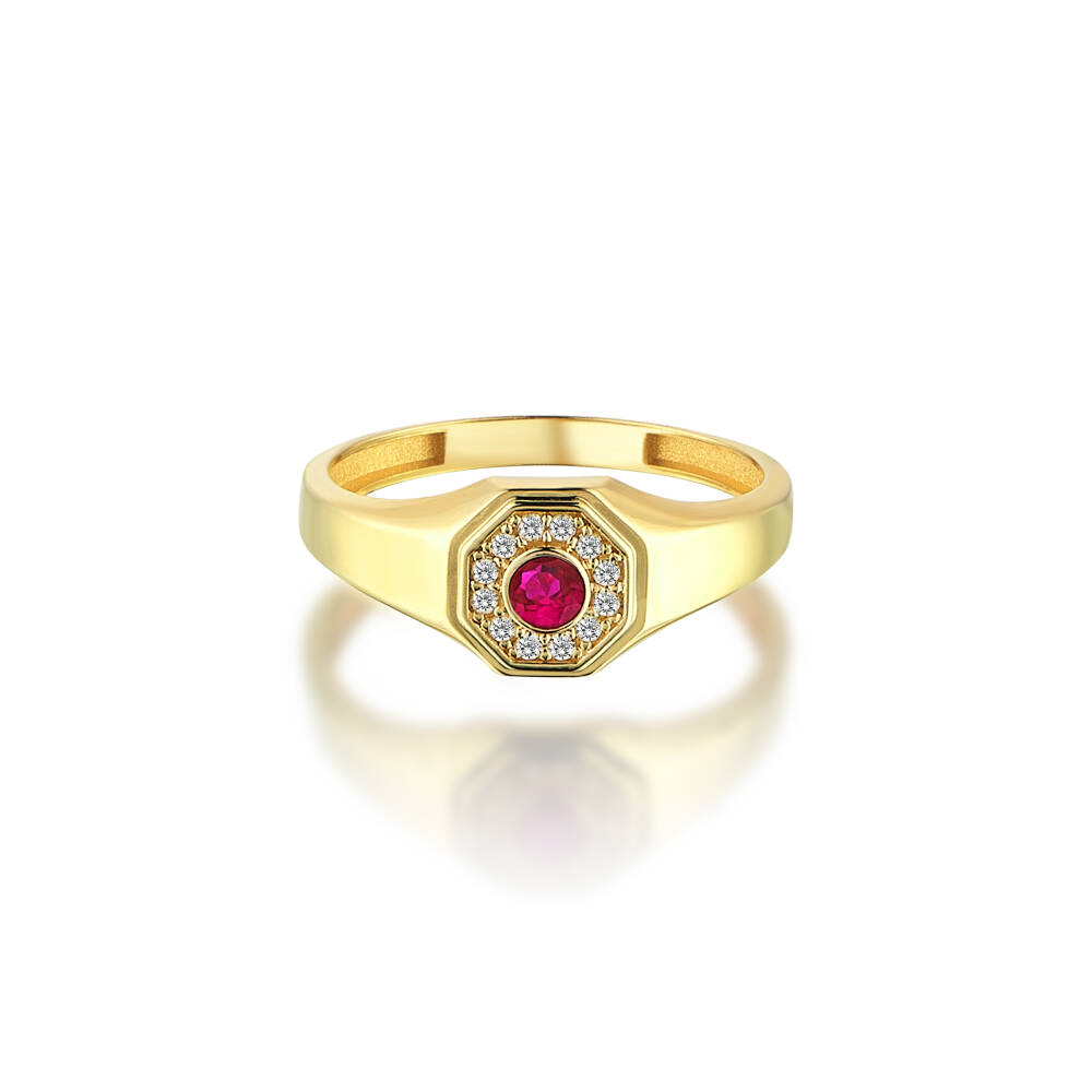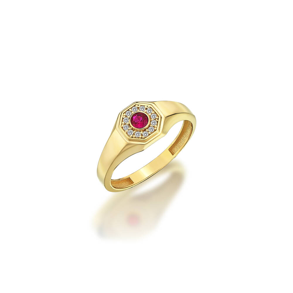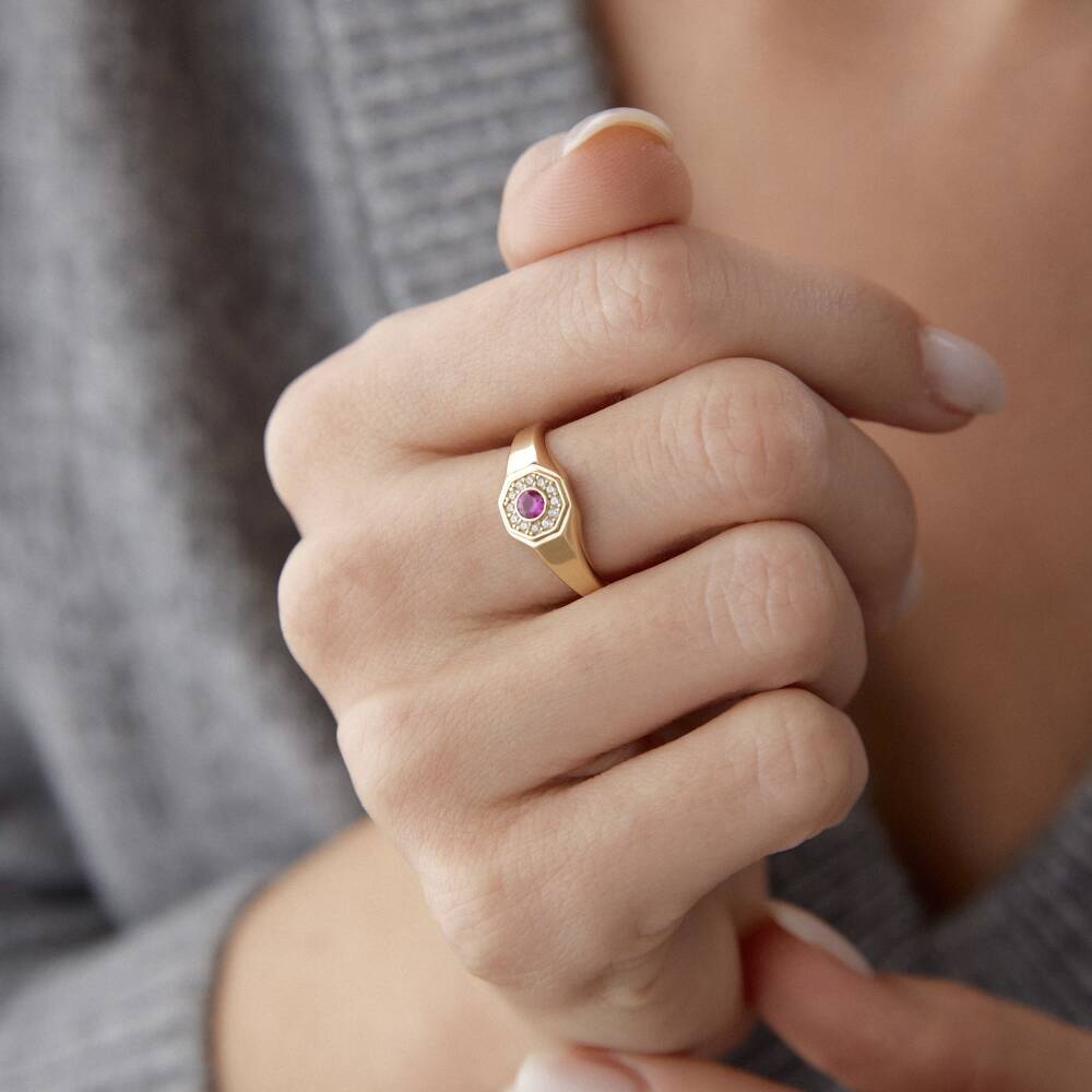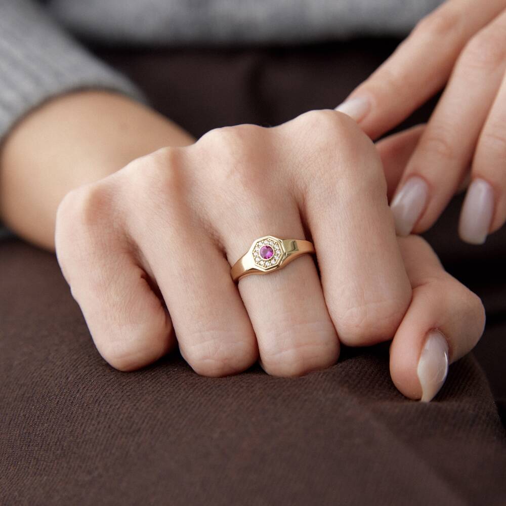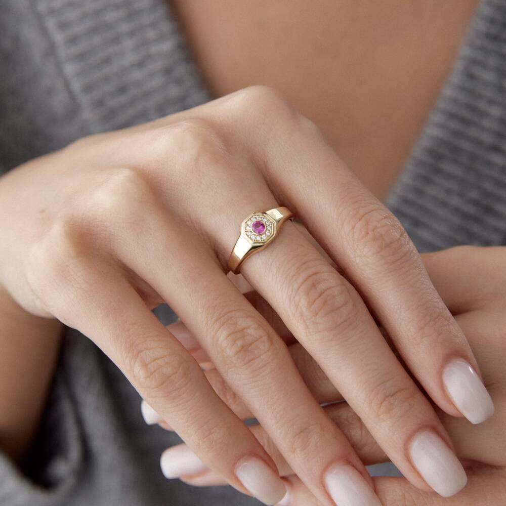 Altın Ortası Pembe Taşlı Madalyon Yüzük