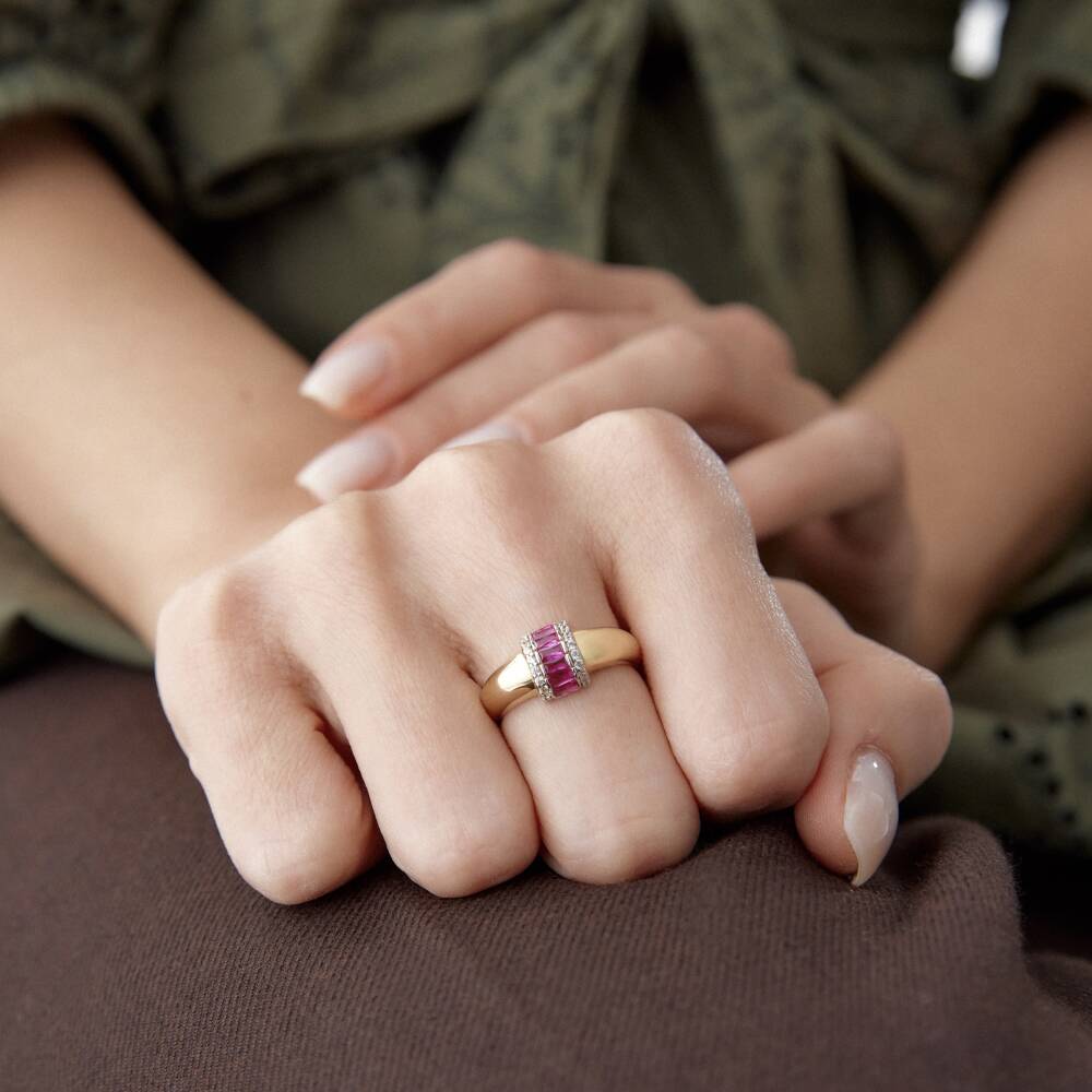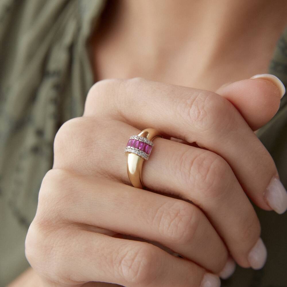 Altın Pembe Taşlı Boğum Yüzük - 1