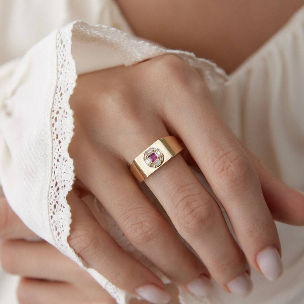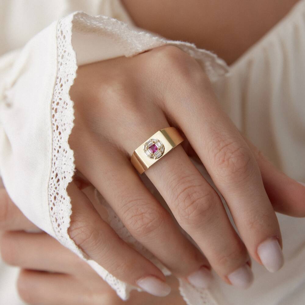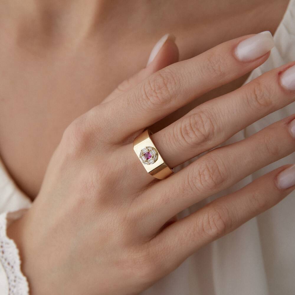 Altın Pembe Taşlı Şövalye Yüzük