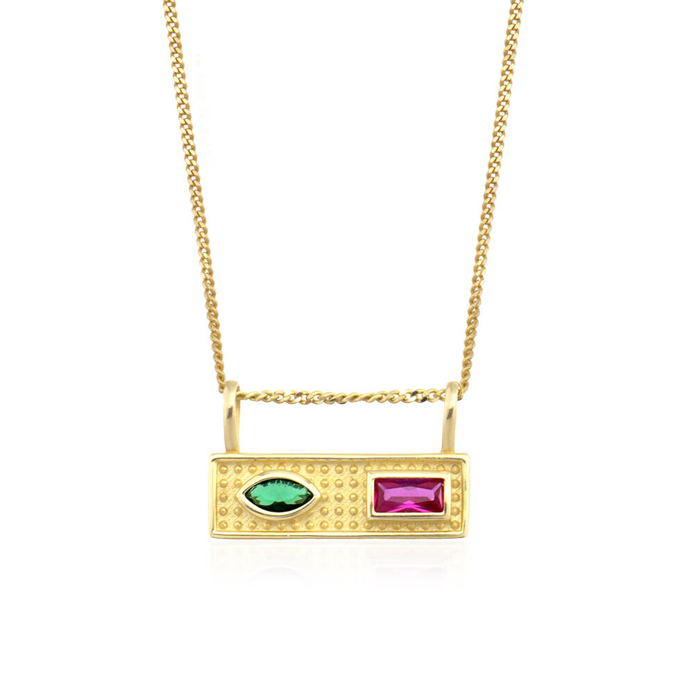 Altın Pembe Taşlı Luna Vintage Kolye