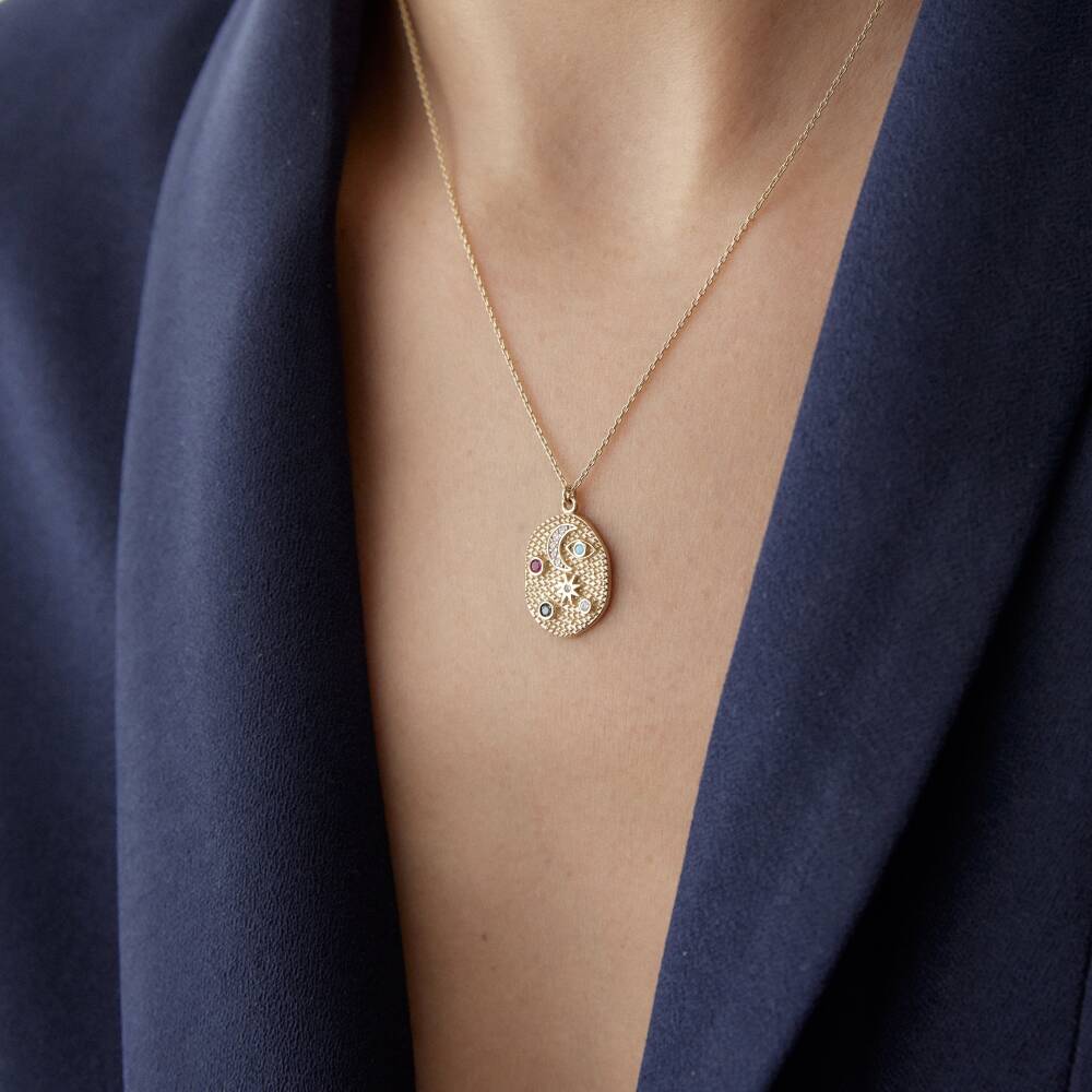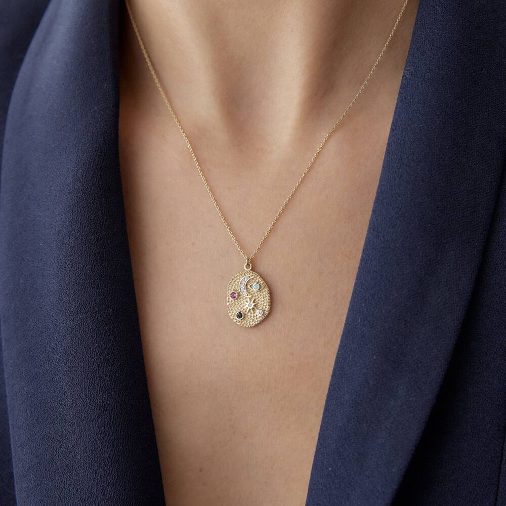 Altın Renkli Taşlı Gece & Gündüz Kolye
