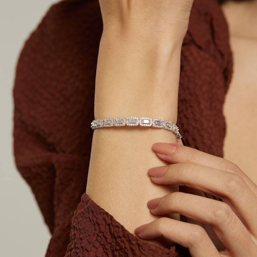Altın Sıralı Baget Taşlı Beyaz Altın Bileklik