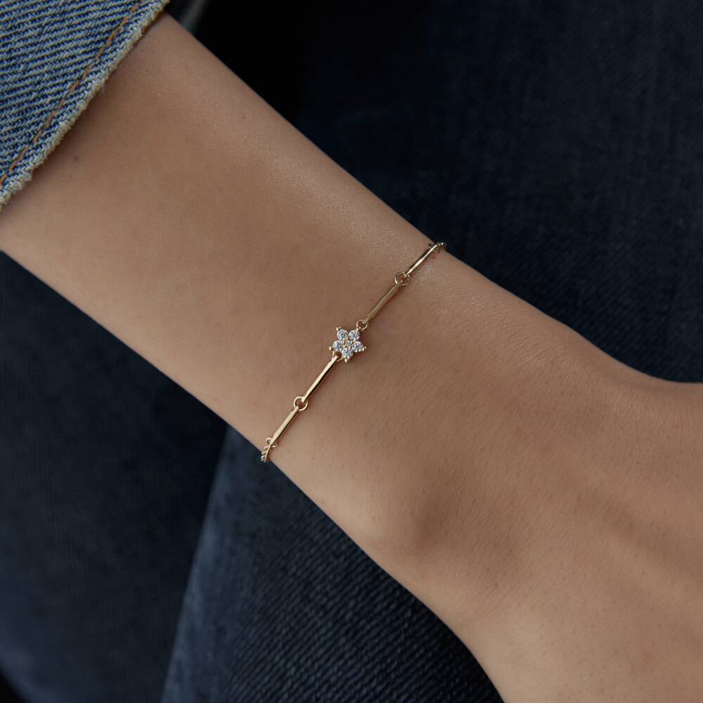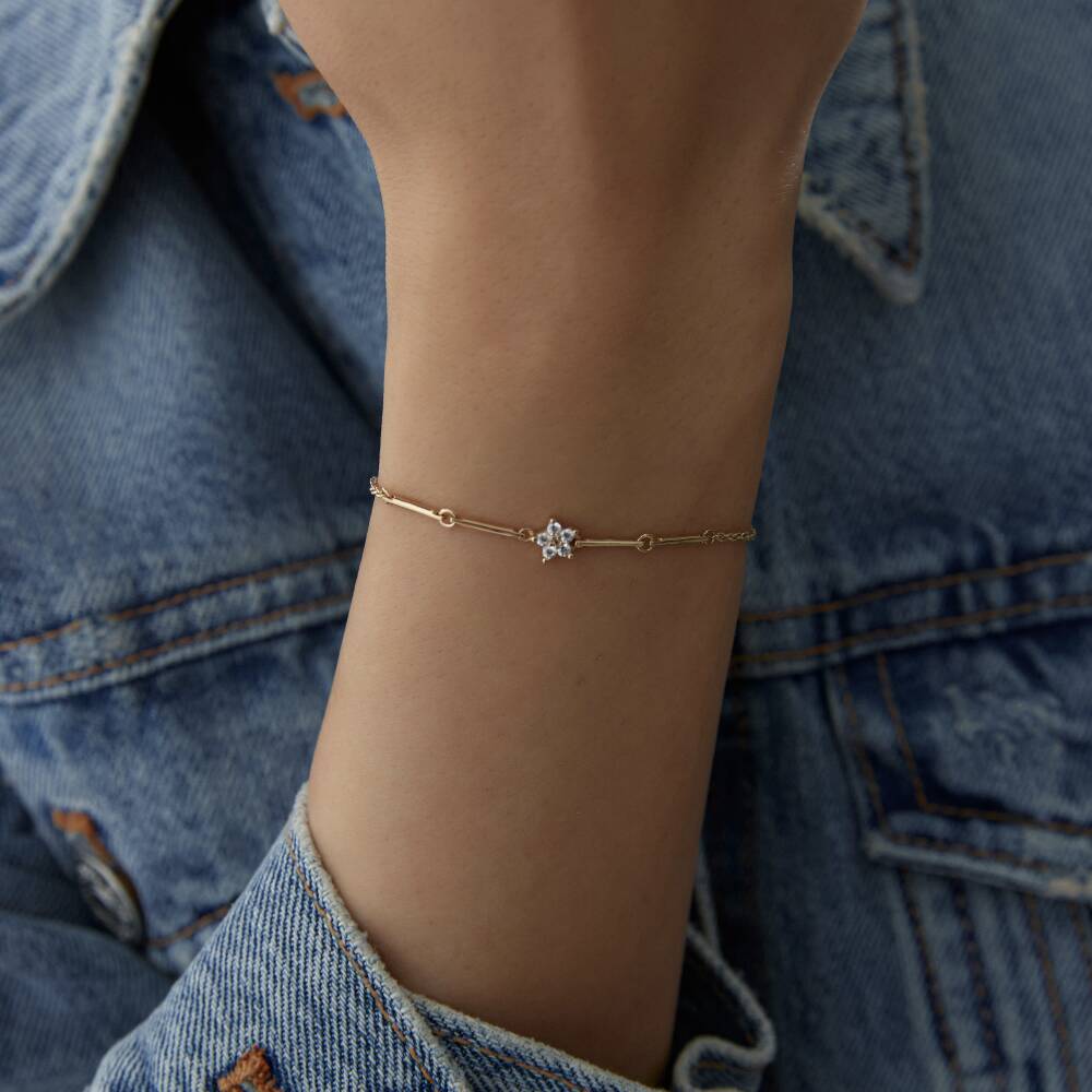 Altın Taşlı Çiçek Ataş Bileklik - 1