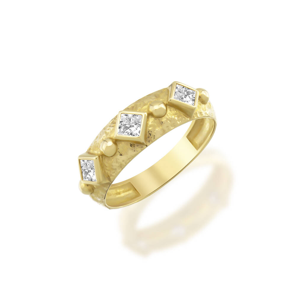 Altın Taşlı Geometrik Luna Yüzük