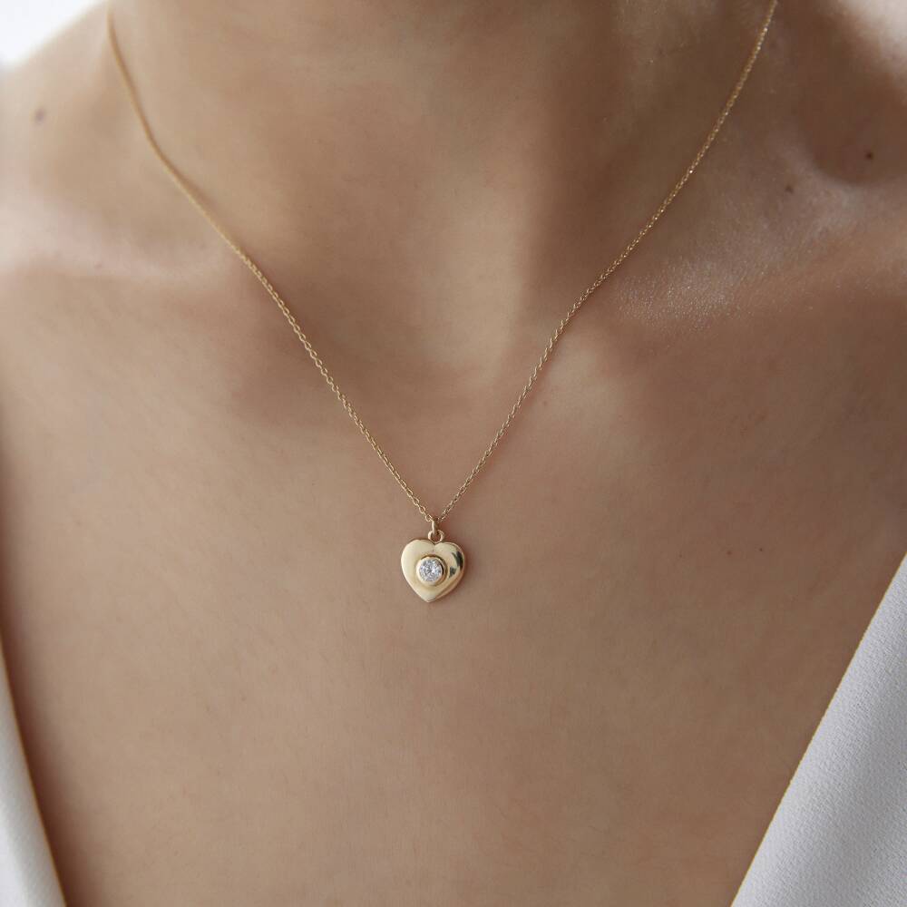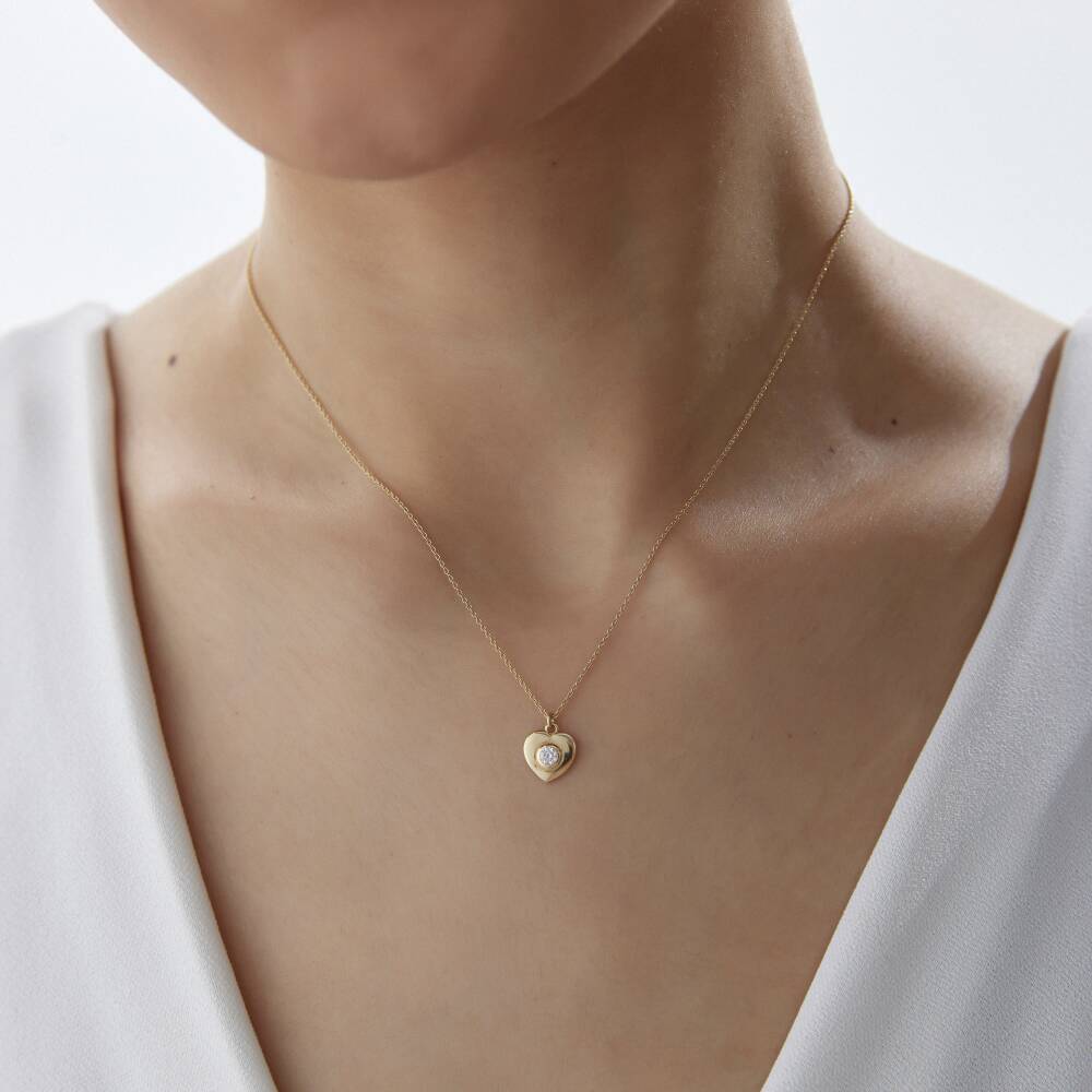 Altın Taşlı Kalp Kolye