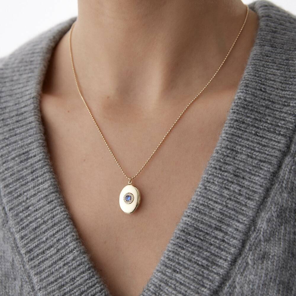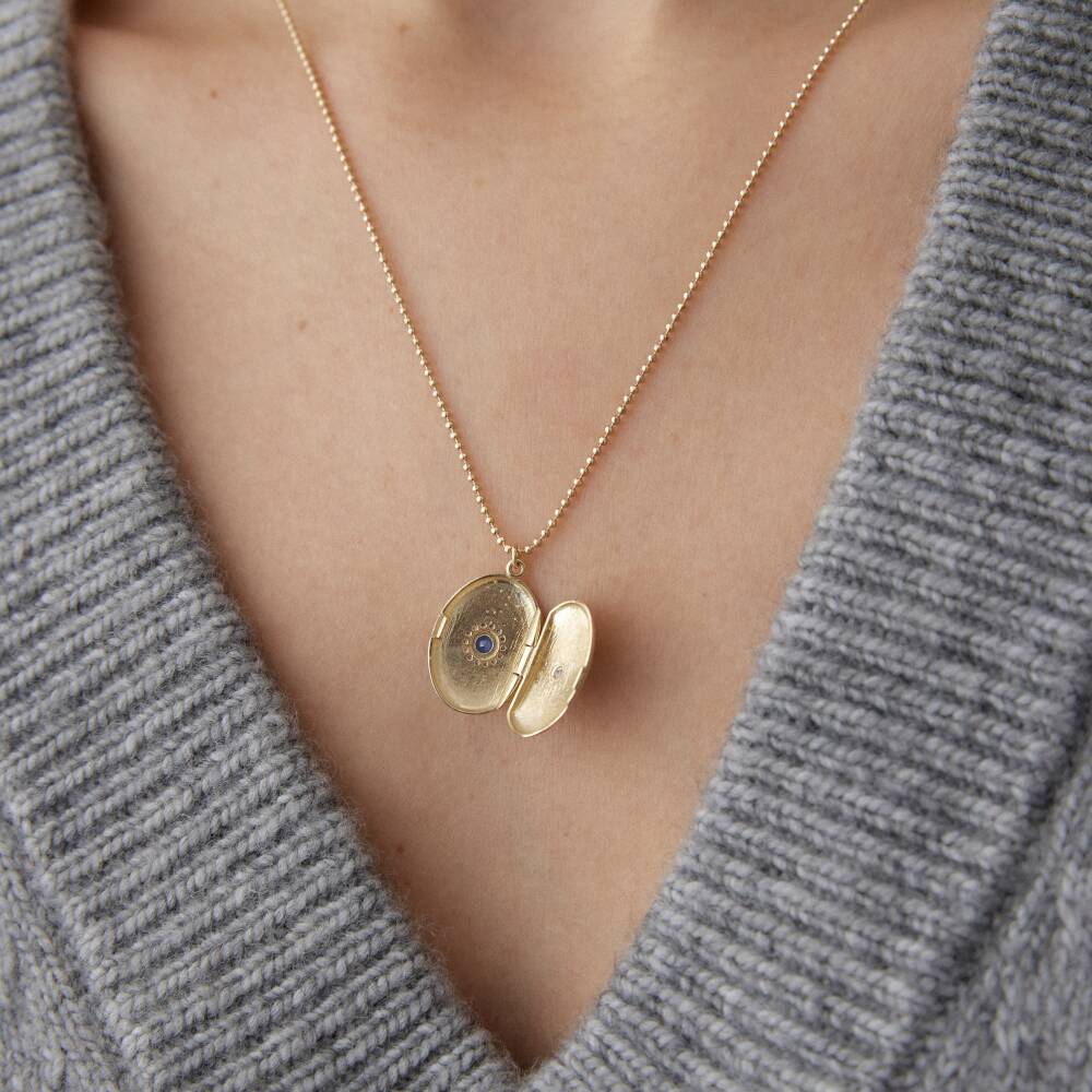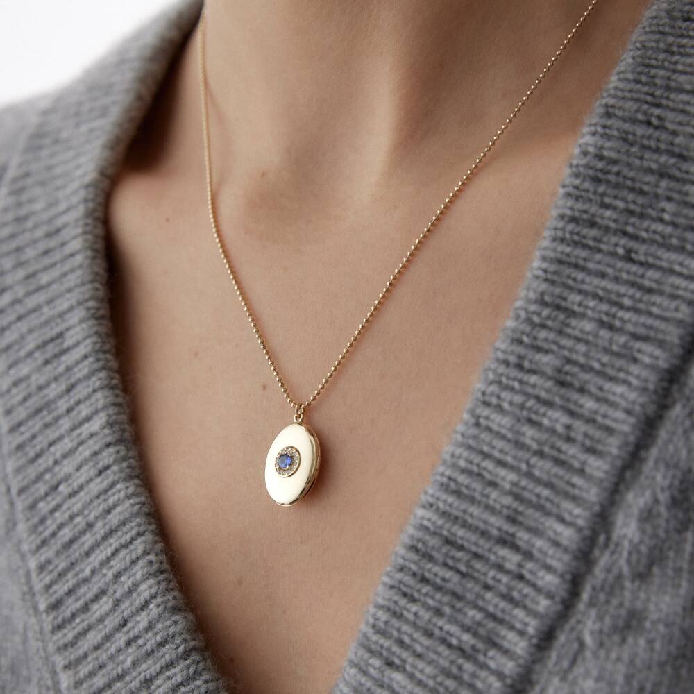Altın Mavi Taşlı Kapaklı Retro Kolye