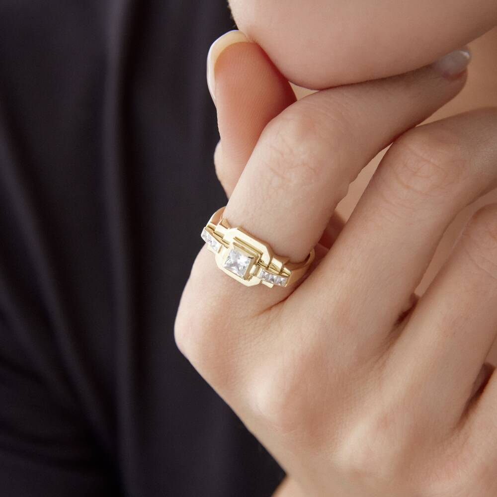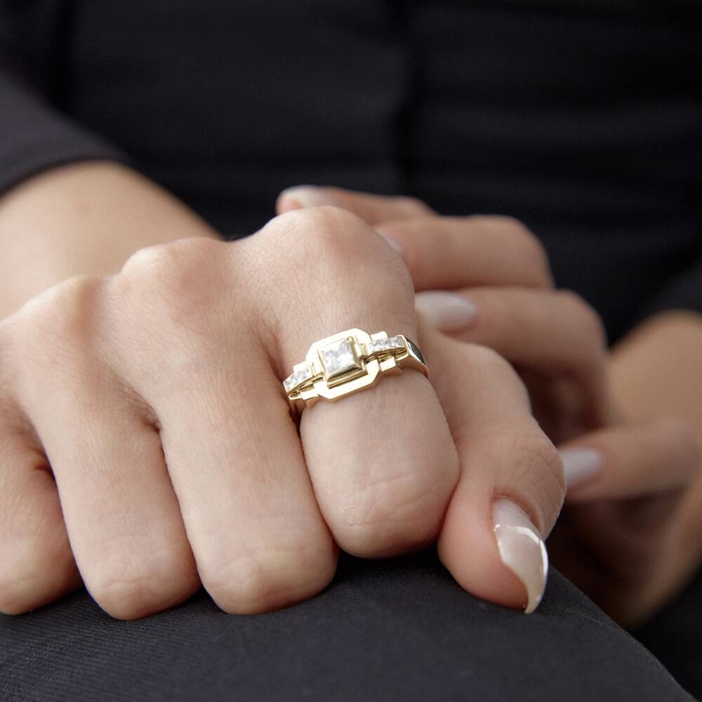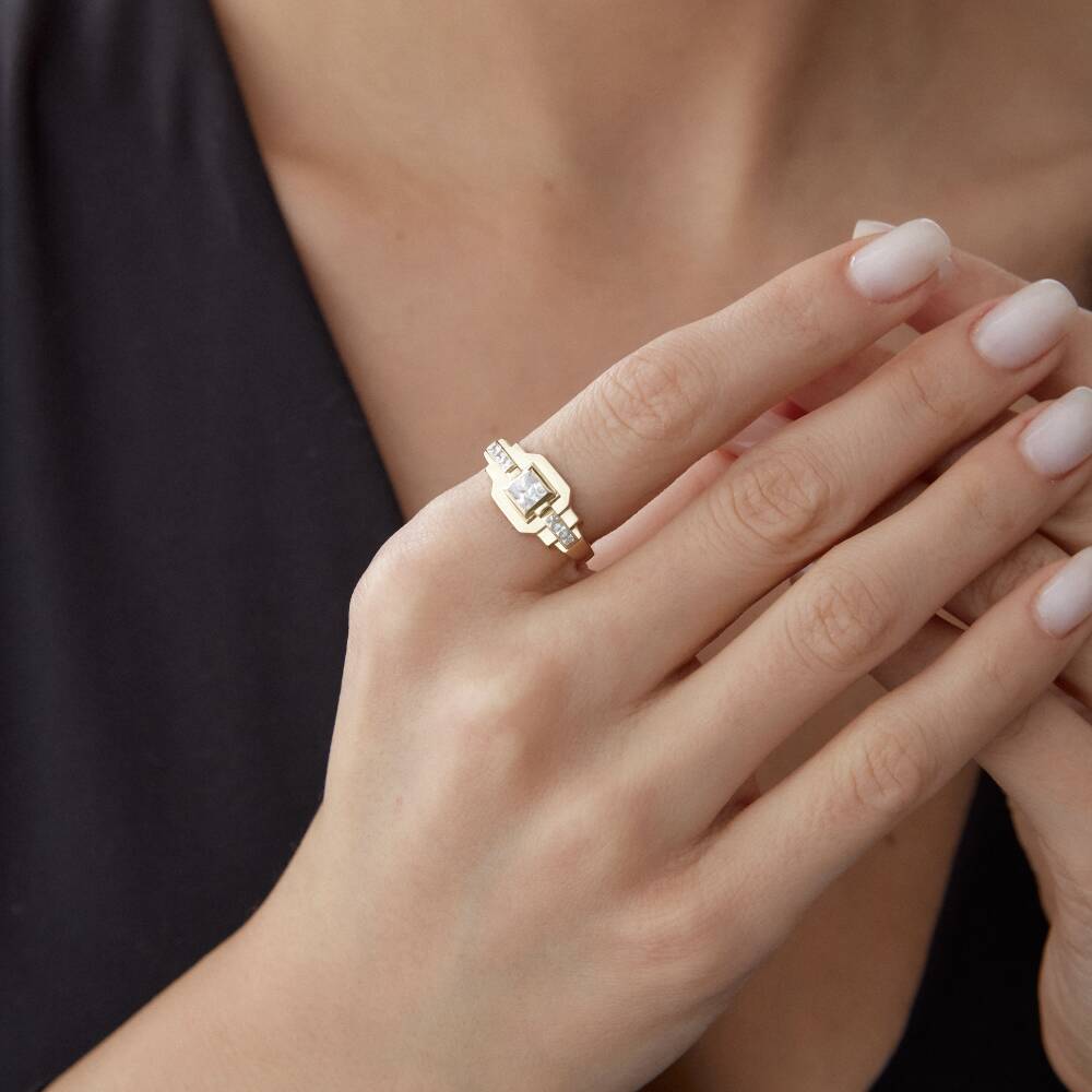 Altın Taşlı Kare Tasarım Yüzük