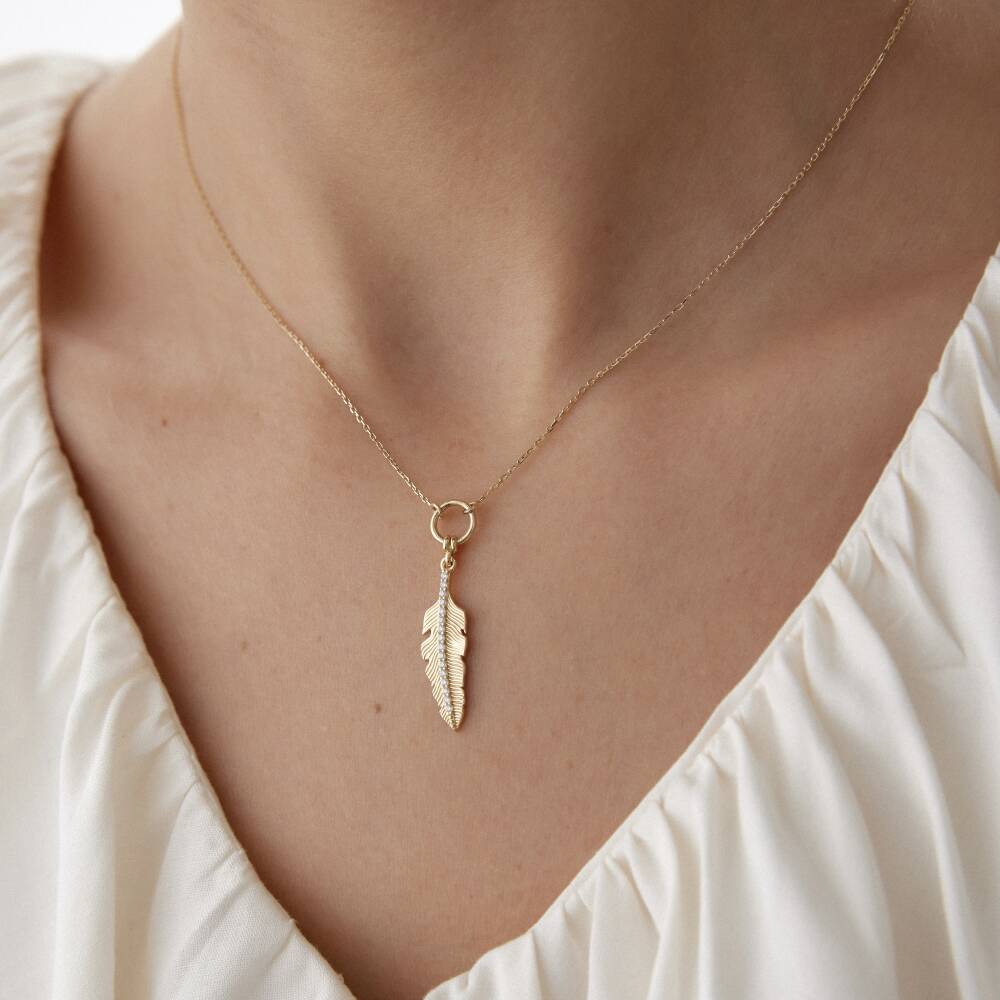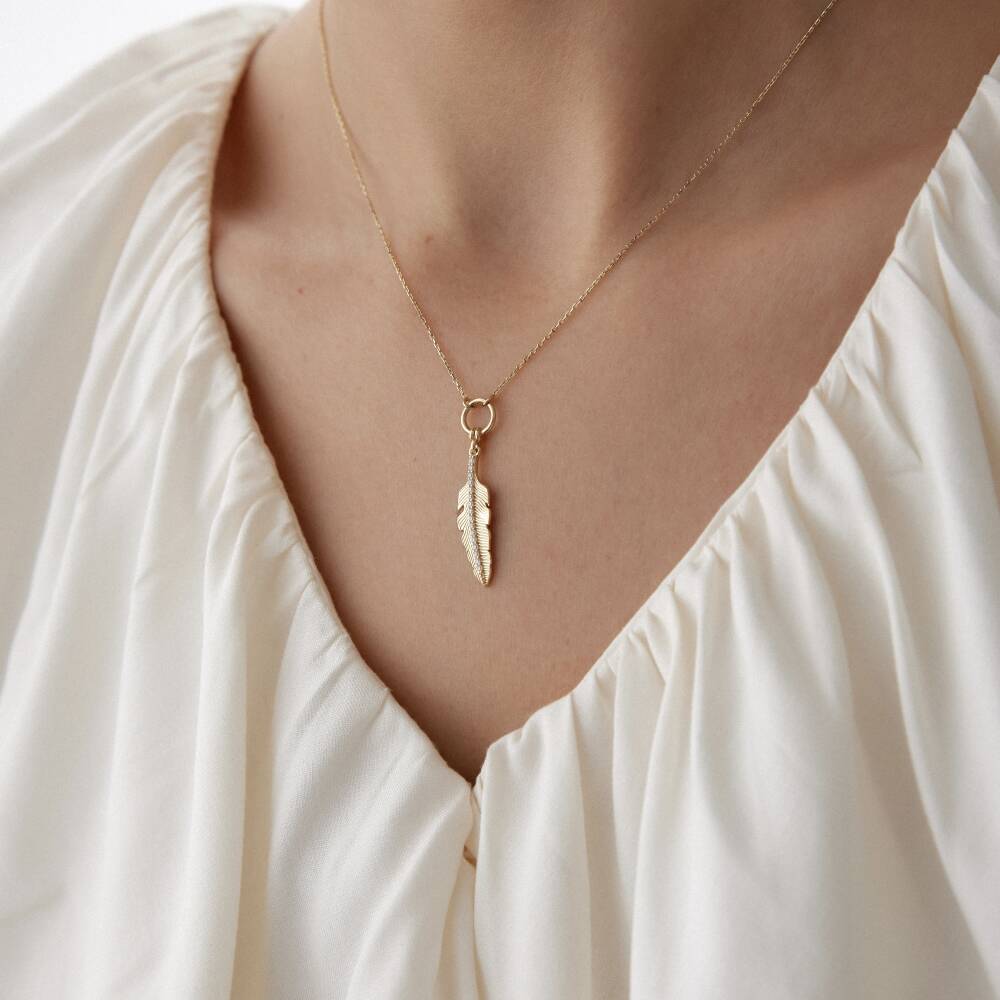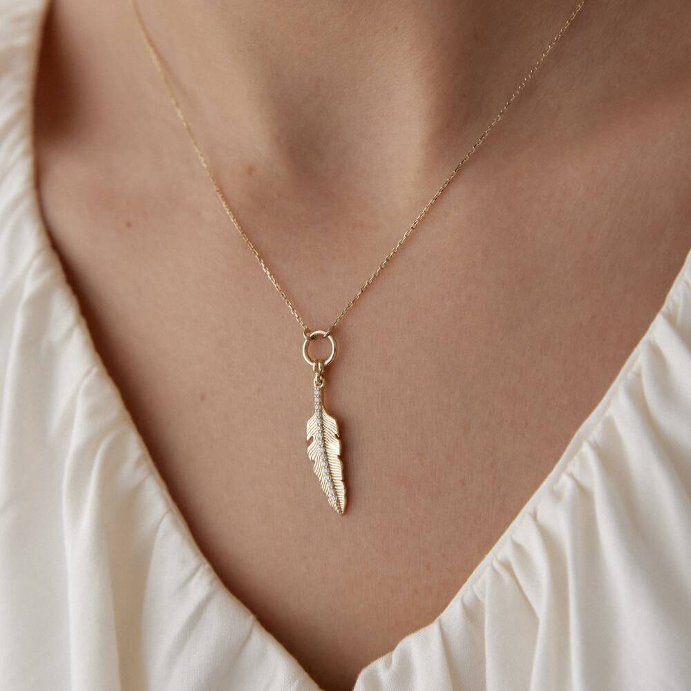 Altın Taşlı Tüy Kolye
