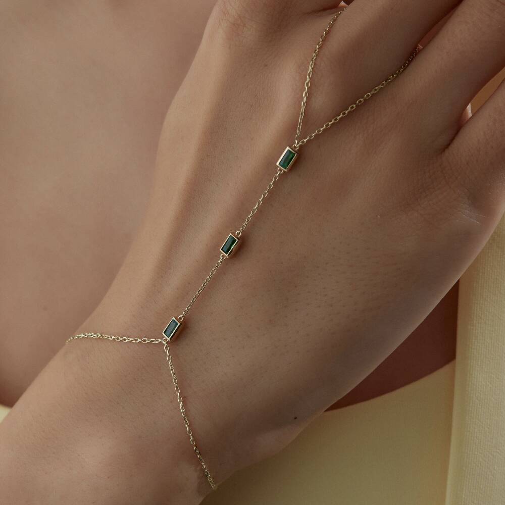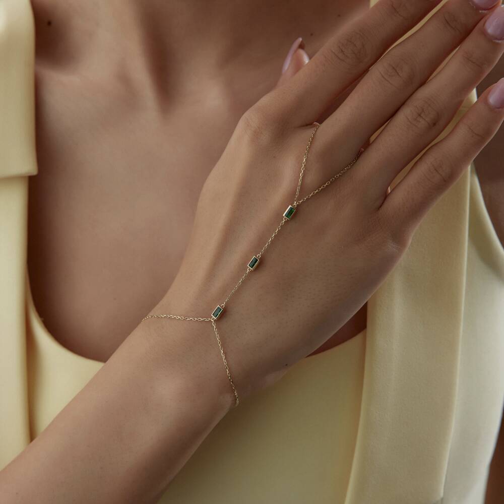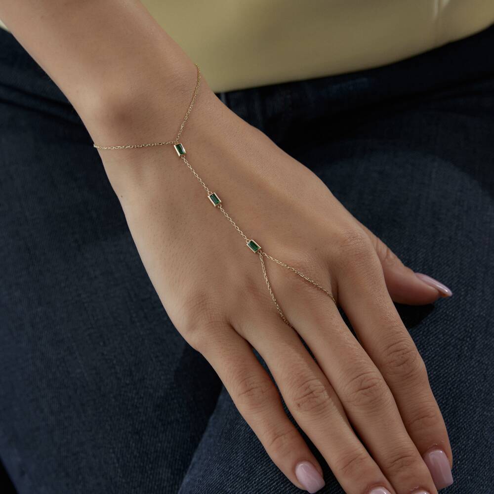 Altın Üçlü Yeşil Baget Taşlı Şahmeran