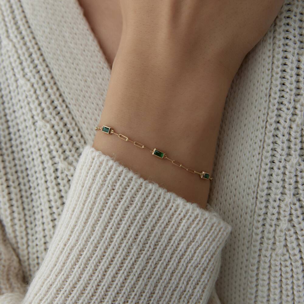 Altın Yeşil Baget Taşlı Ataş Bileklik