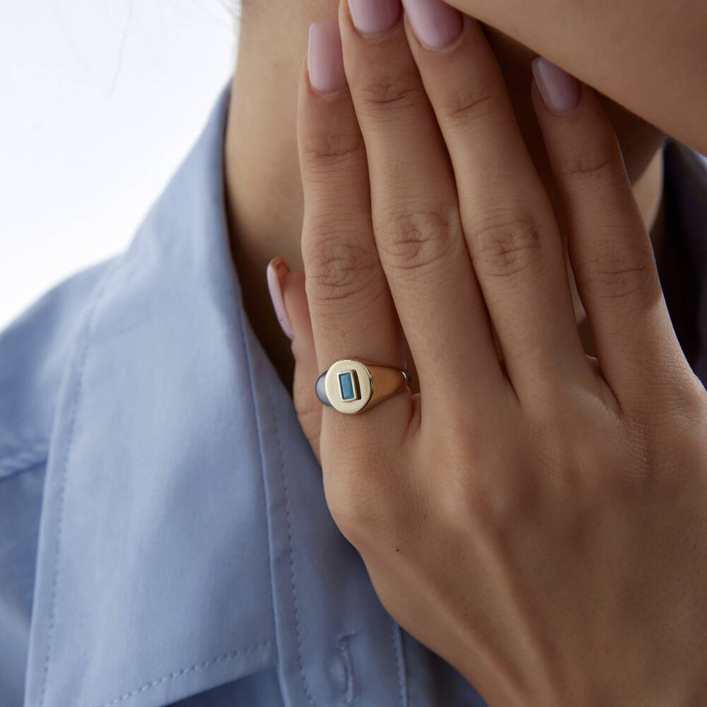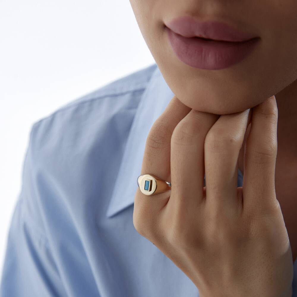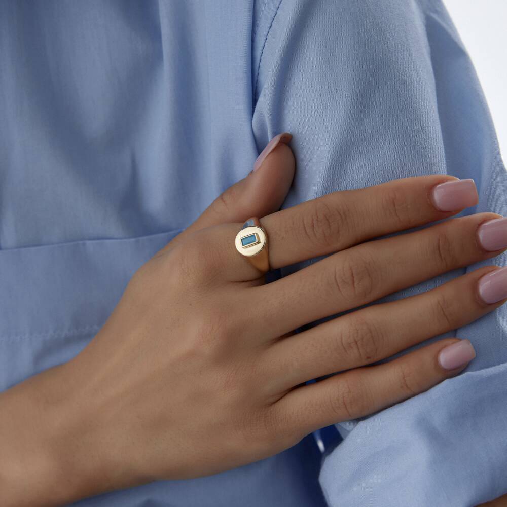 Altın Firuze Baget Taşlı Oval Şövalye Yüzük