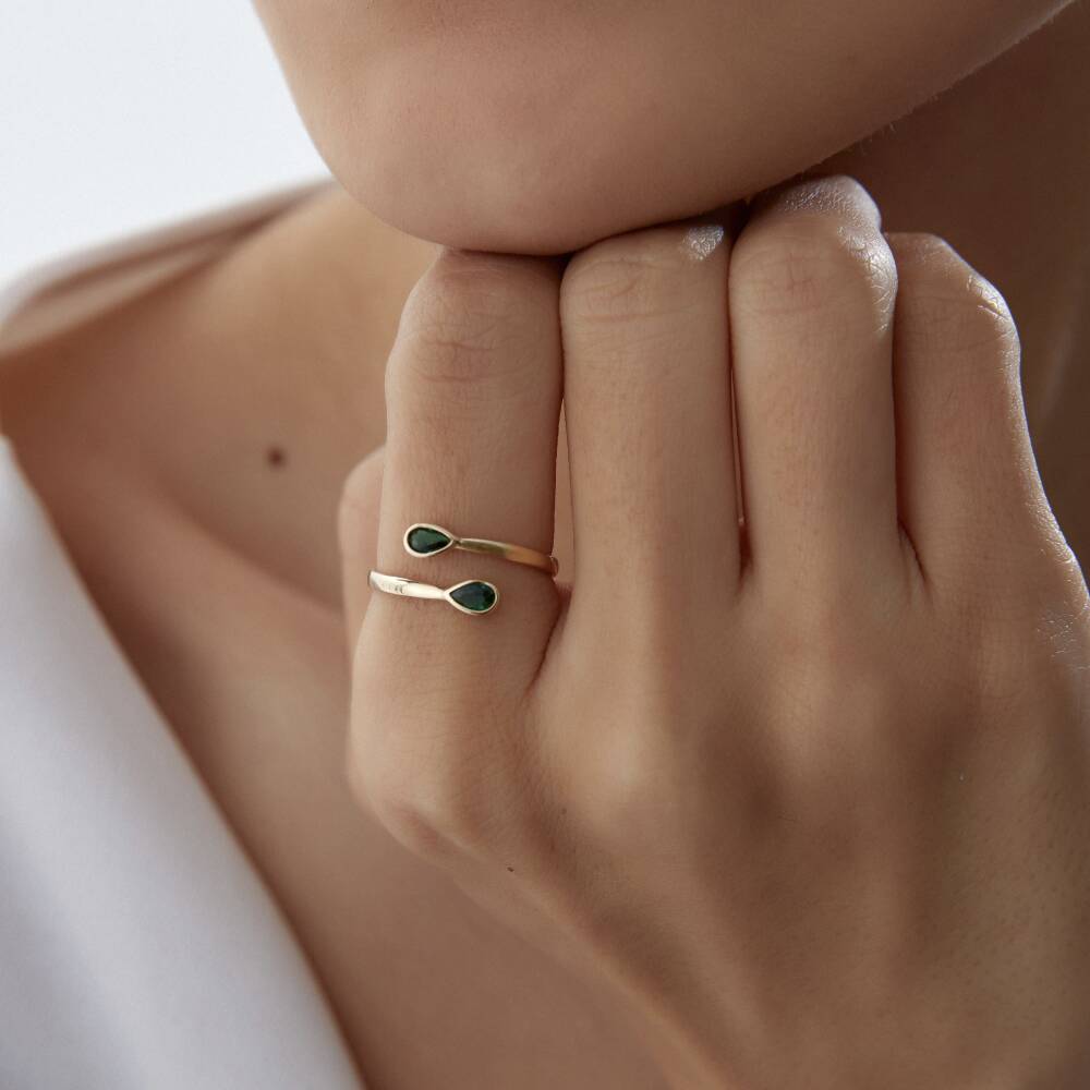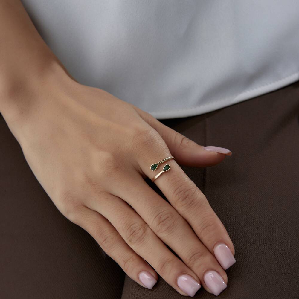 Altın Yeşil Damla Taşlı Sarmal Yüzük