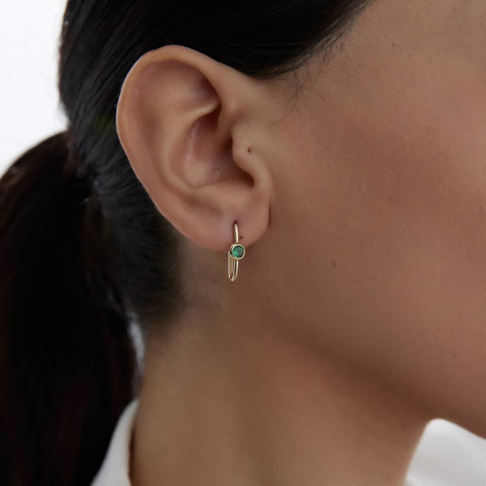 Altın Yeşil Taşlı Ataş Küpe - 1