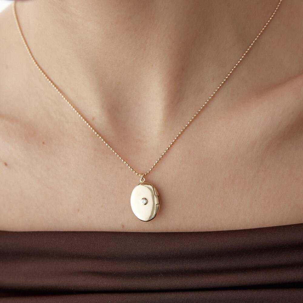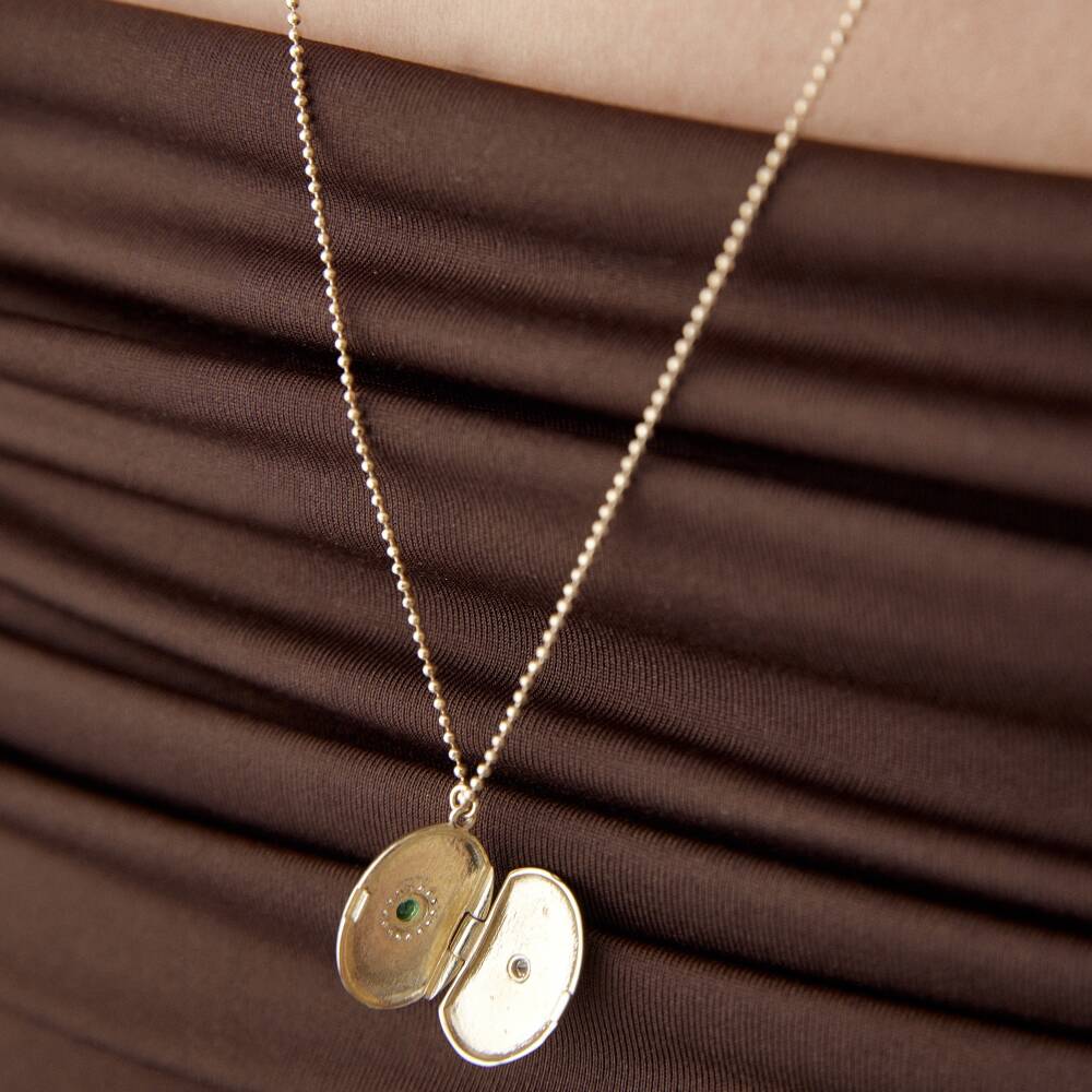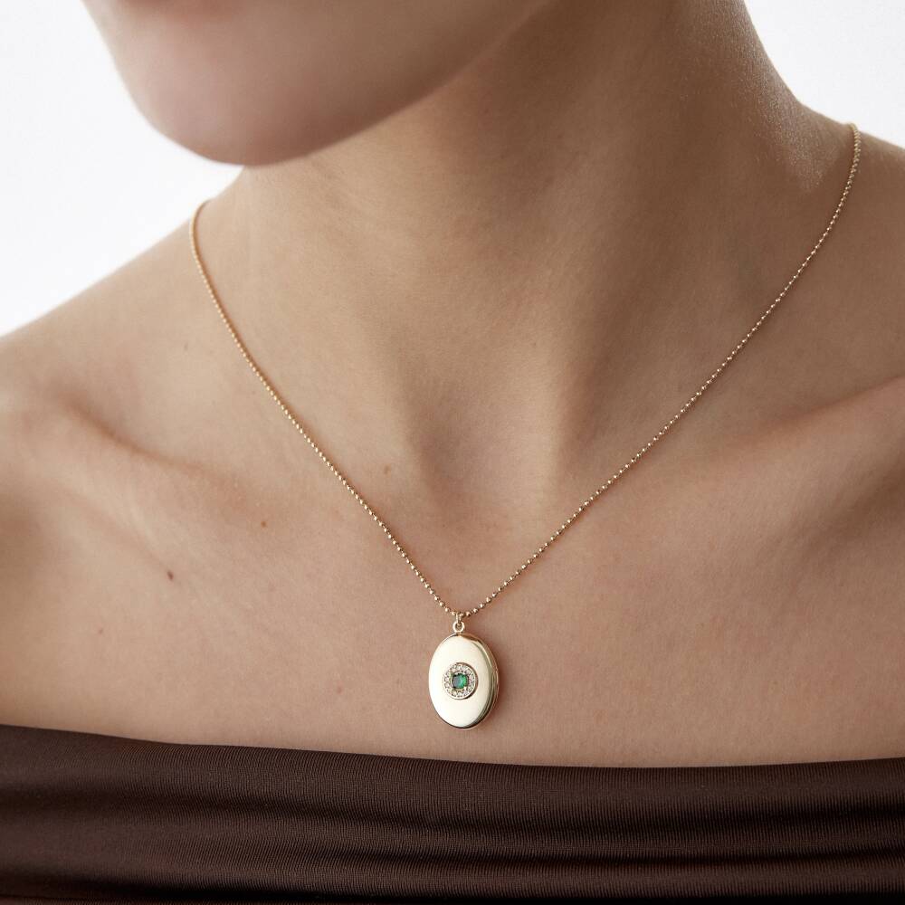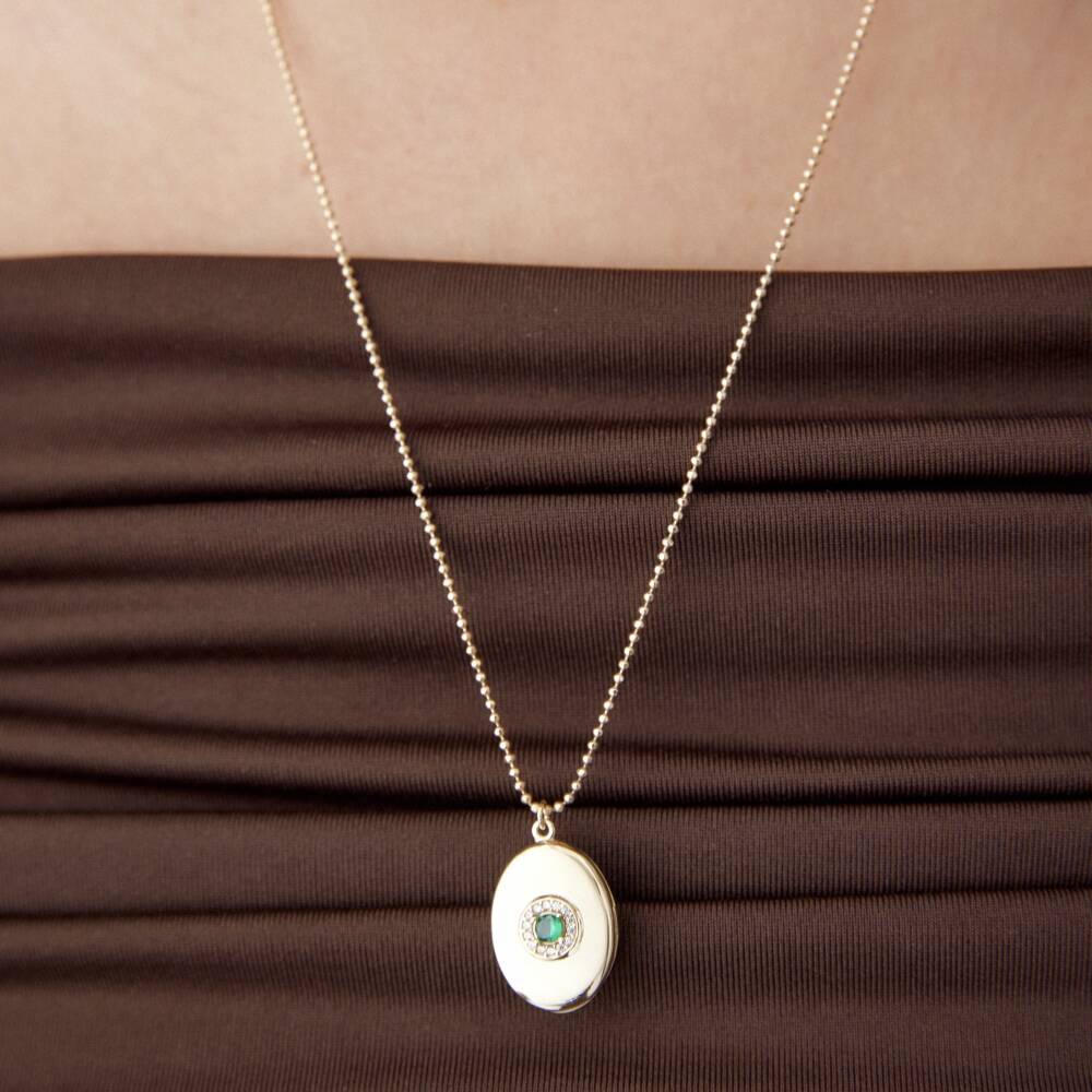 Altın Yeşil Taşlı Kapaklı Retro Kolye