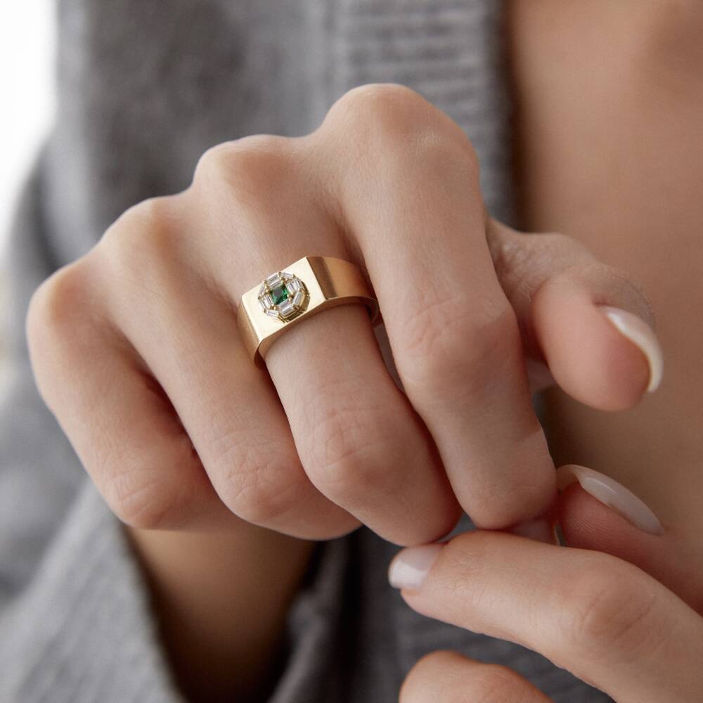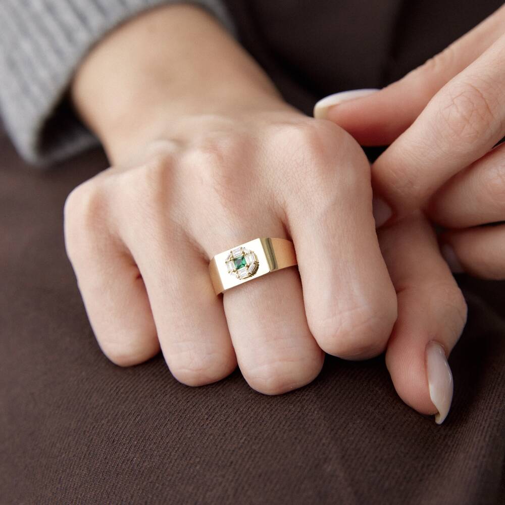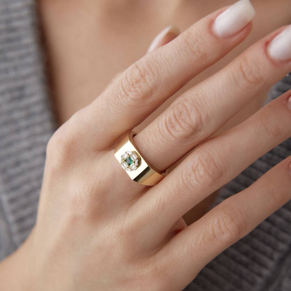 Altın Yeşil Taşlı Şövalye Yüzük