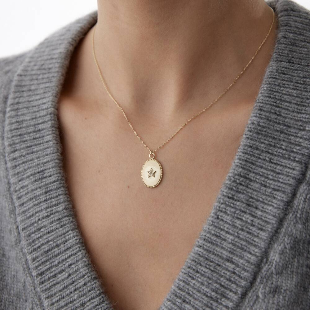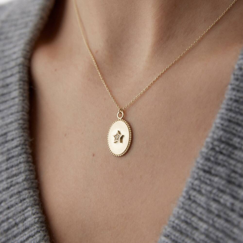 Altın Taşlı Yıldız Plaka Kolye