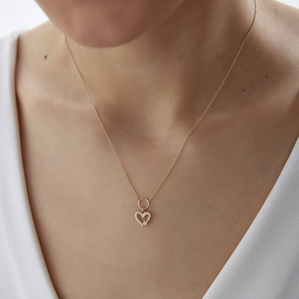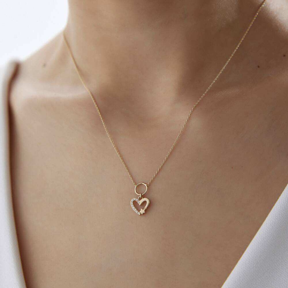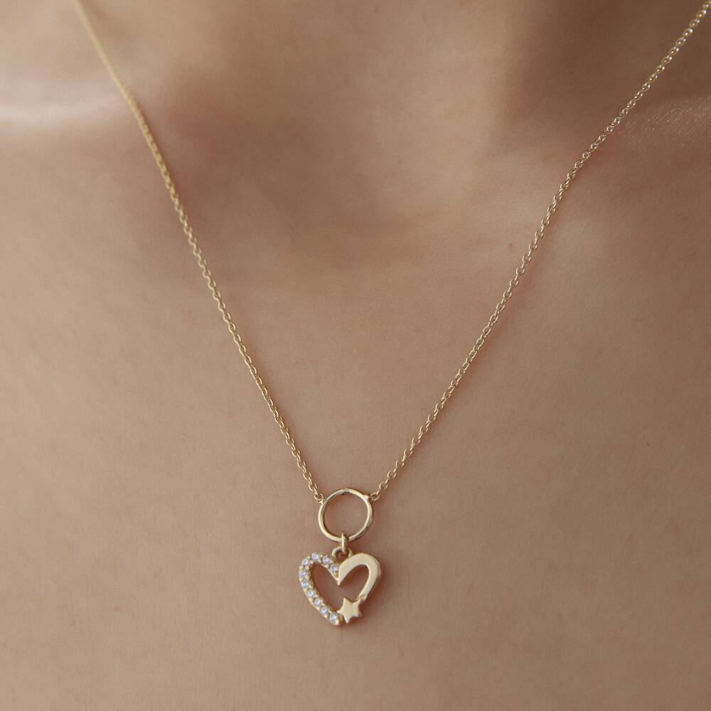 Altın Yıldızlı Kalp Kolye