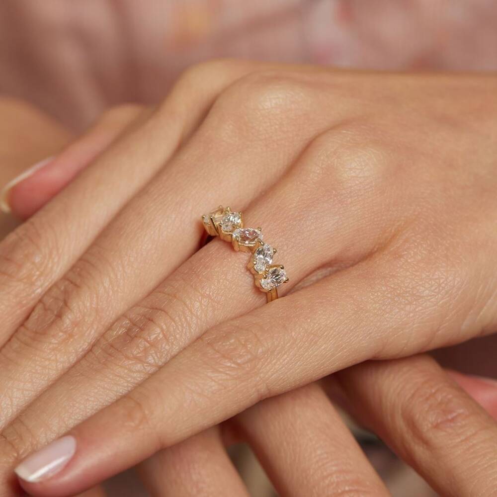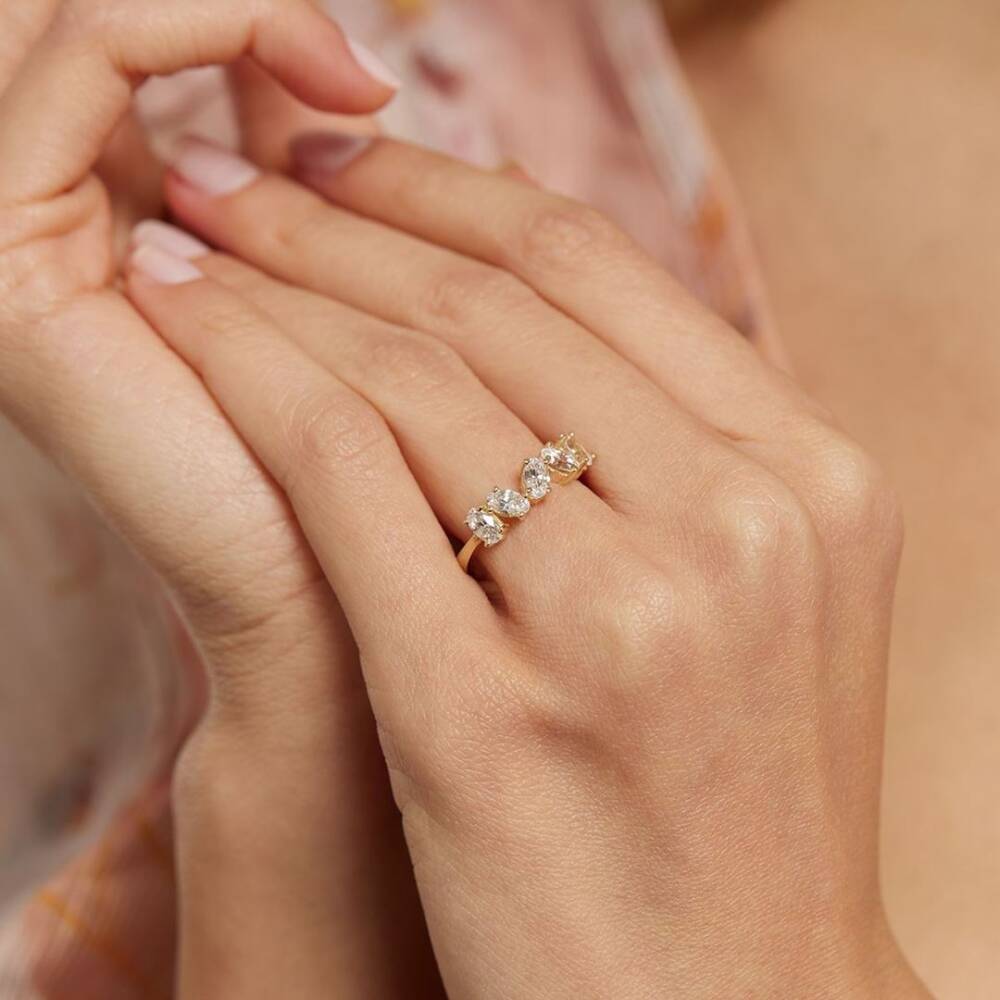 Asimetrik Beştaş Altın Yüzük