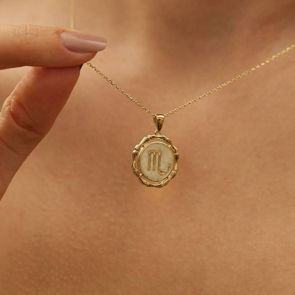 Beyaz Mineli Akrep Burcu Altın Kolye - 1