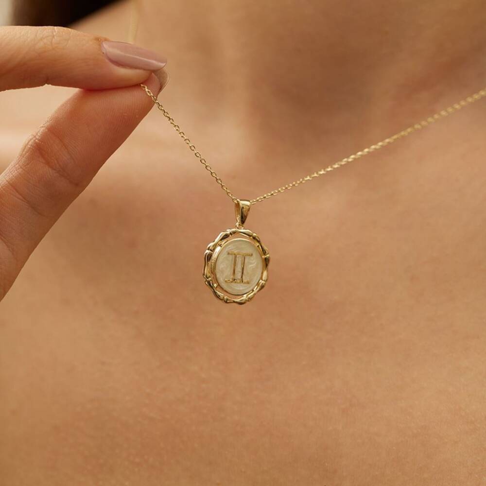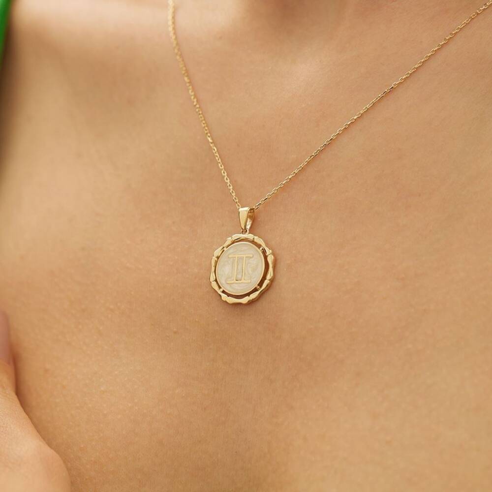 Beyaz Mineli İkizler Burcu Altın Kolye - 1