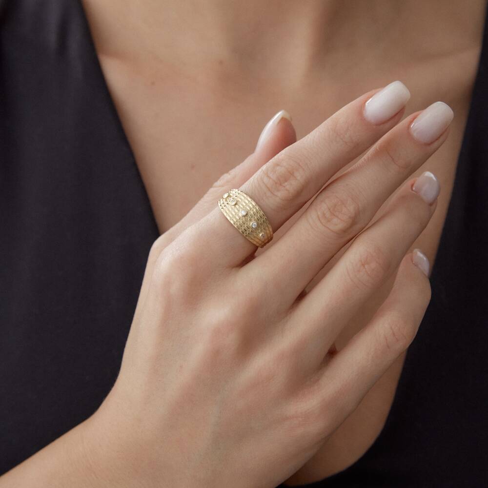 Beyaz Taşlı Vintage Luna Yüzük - 1