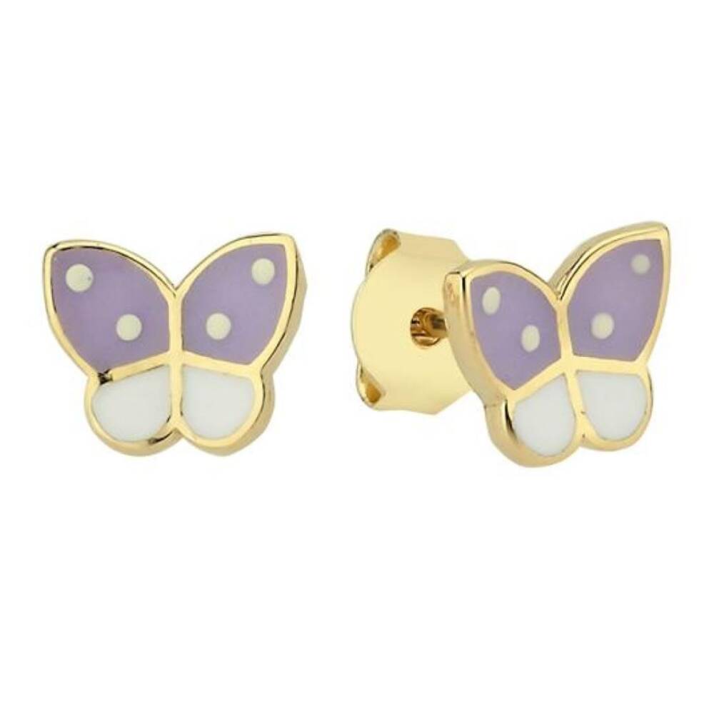 Beyaz Ve Mor Mineli Kelebek Altın Çocuk Küpesi - 1