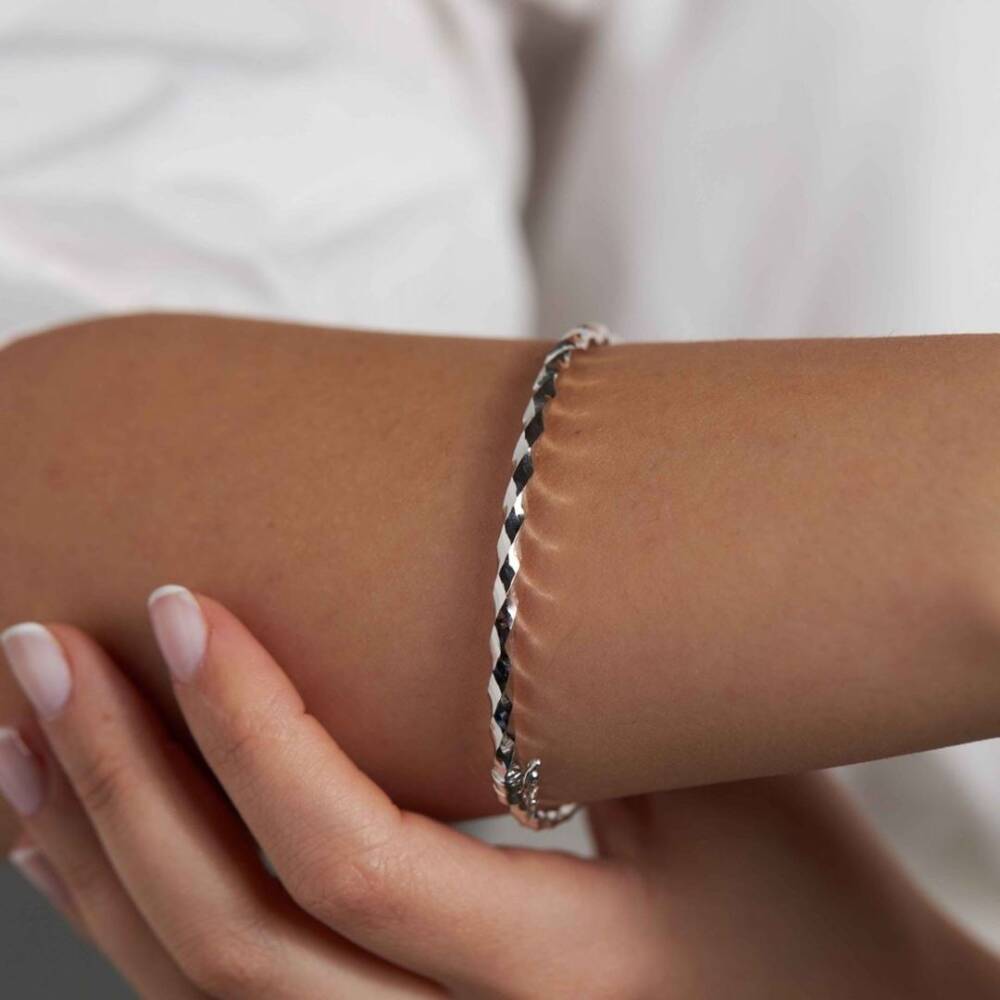 Burgulu Beyaz Altın Kelepçe Bilezik - 1